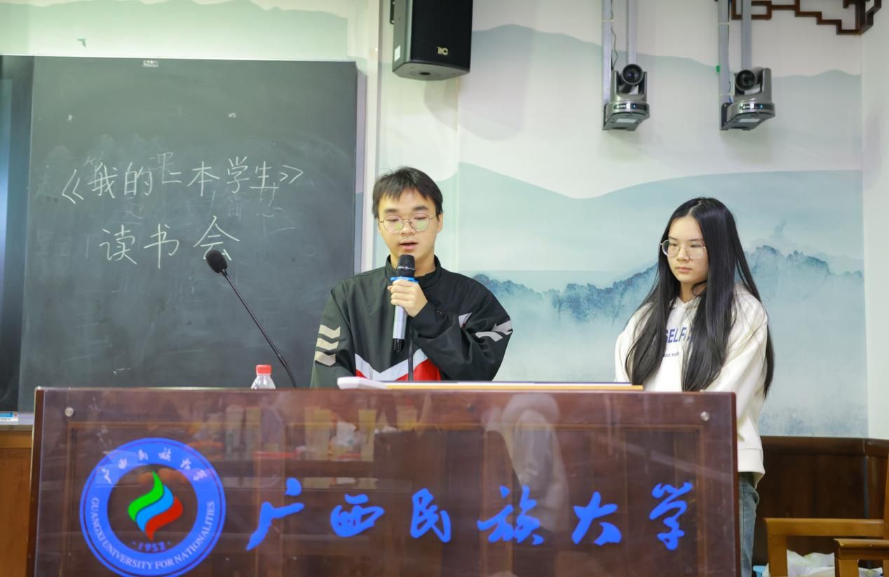 主持人邹意敏介绍活动主题与流程。班主任罗莹钰致辞,分享推荐《我的二本学生》一书的初衷,“这本书里的迷茫、挣扎与突围,正是我们身边同学正在经历的故事,希望大家能在交流中找到属于自己的方向”。