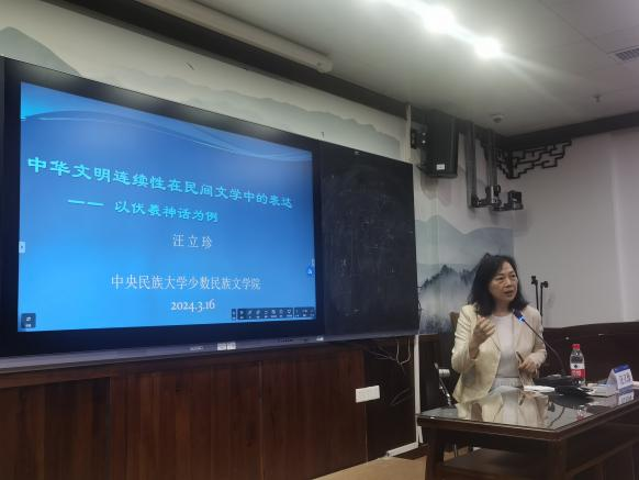 第二分会场则由广西民族大学必威西汉姆联官网副院长陆晓芹教授、黄玲教授主持。中国社会科学院的朝戈金研究员、汤晓青研究员、中央民族大学的汪立珍教授以及湖南大学的罗宗宇教授分别以“口头传统•口头文学•口头诗学”“中国多民族文学研究趋势简论”“中华文学明连续性在民间文学中的表达”“民俗文学与沈从文的湘西书写”为题进行了专题报告和研讨。专家们分别从口头文学与口头诗学对人类文明进步上的作用、中国多民族文学理论体系构建的历史与未来展望、中华民族民间文学体系内蕴的中华文明的精神持续、民俗文化对湘西书写的艺术创作思维影响等方面深入进行了分析,展现出民族文学与文化未来发展的多种路径和可能。