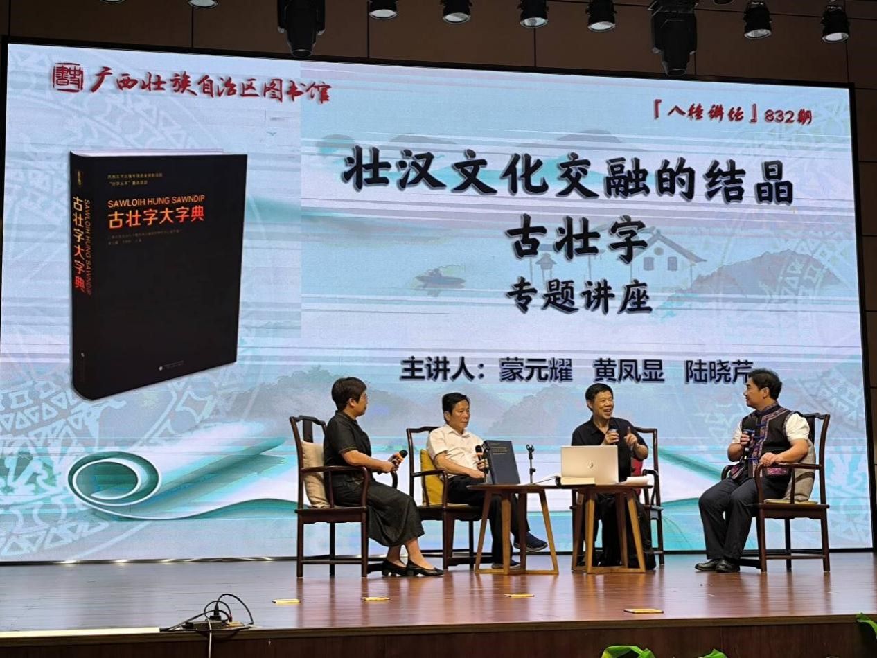 活动现场,三位专家从古壮字产生的时间、古壮字的性质、古壮字的结构类型、古壮字的应用、古壮字与“三交”史等方面展开分享和交流,指出古壮字是壮汉文化交融的结果,是中华民族交往交流交融的生动体现,其保护和传承对铸牢中华民族共同体意识、巩固和发展民族团结进步具有积极作用。