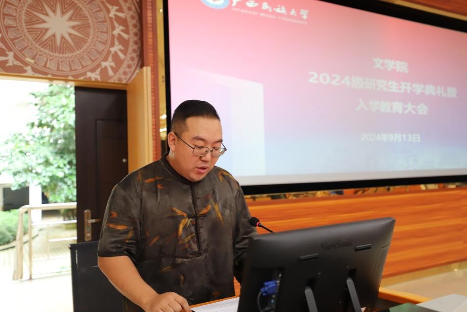 接着,中国现当代文学博士研究生新生郭靖宣和国际中文教育硕士研究生谢冰梅作为新生代表发言。两位同学都表示,将会在新的人生阶段努力学习,不辜负父母老师的期待,立志成为一名优秀的研究生。