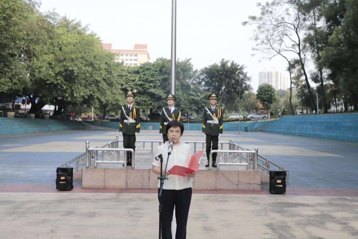 陆晓芹老师对全体师生致以问候,在国旗下鼓励大家发扬“博学弘毅,言文行远”的院训,学有所获、学有所成,勇敢追梦,争做有理想、有道德、有文化、有纪律的新时代青年,实现德智体美劳全面发展,为祖国的明天奋发图强。