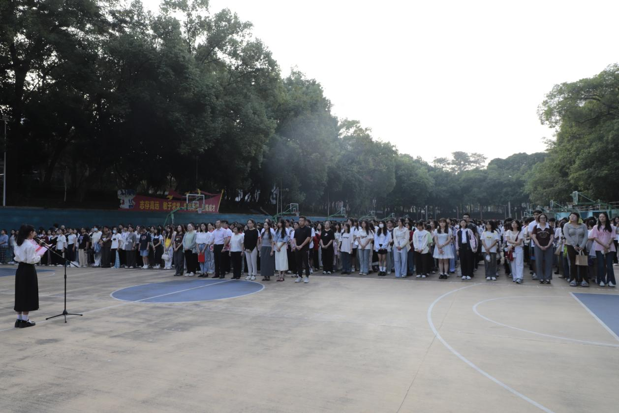 10月14日,我院全体师生齐聚灯光球场举行升旗仪式。