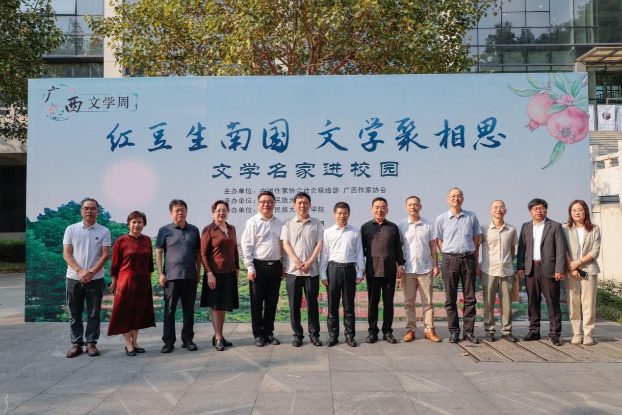 邓国彬致辞,热烈欢迎各位作家,对“广西文学周”名家进校园活动在广西民族大学召开深感荣幸,并介绍广西民族大学办学历程,提及必威西汉姆联官网中国语言文学专业。广西民族大学始终以铸牢中华民族共同体意识为主线,落实立德树人根本任务,积极服务国家战略。学校强调培养理论研究和创作实践相结合的文学通识教育特色,建立“相思湖作家群”,汇聚一批批有成就或热心文学人才培养的作家、诗人、评论家和教师,在广西乃至全国文坛产生了广泛影响。邓国彬还表示,希望以此活动为契机,持续推动广西民族大学理论研究和创作实践相结合的文学通识教育发展。