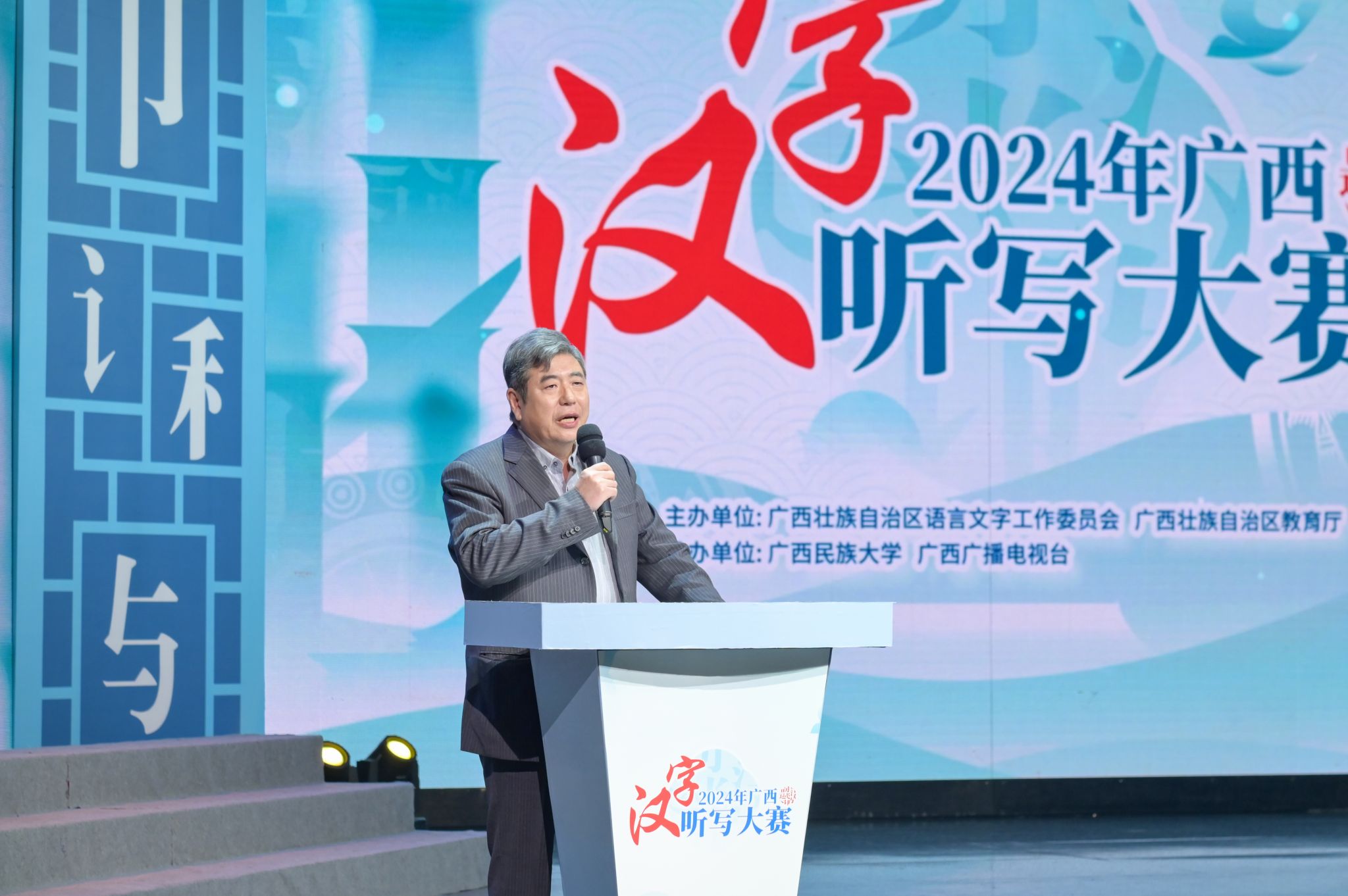 本次赛事由广西壮族自治区语言文字工作委员会、广西壮族自治区教育厅联合主办,广西民族大学、广西广播电视台承办,广西民族大学必威西汉姆联官网协办。评委组由教育部语言文字应用管理司原副司长、教育部语言文字应用研究所原所长张世平、广西师范大学必威西汉姆联官网教授肖瑜、南宁师范大学必威西汉姆联官网教授莫山洪组成,仲裁组由南宁师范大学必威西汉姆联官网院长、教授石勇、湖州师范学院文传学院副院长、副教授黄乐组成,主考官由湖南大学新闻与传播学院教授袁涤非、广西艺术学院影视与传媒学院教授周静、广西大学新闻与传播学院教授李朝珍担任。