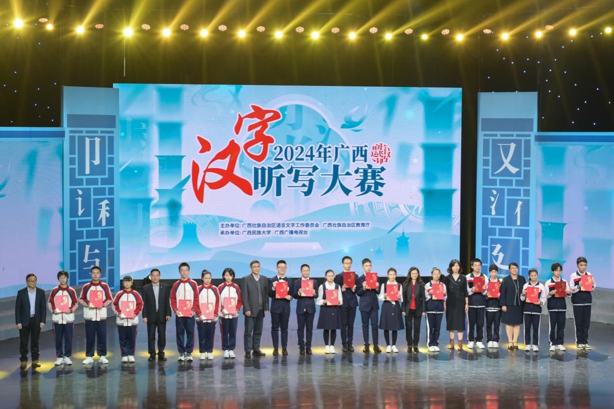 12月25日,2024年广西汉字听写大赛在广西广播电视台演播厅落下帷幕。广西14个地市依据初赛各遴选6名参赛选手组成代表队参赛。经过角逐,钦州市代表队获一等奖,河池市、玉林市代表队获二等奖,北海市、崇左市、贺州市代表队获三等奖。