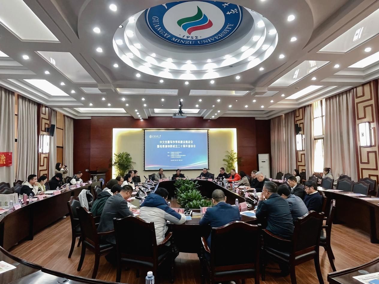 12月31日下午,广西民族大学中文创意写作学科建设推进会暨相思湖诗群成立二十周年座谈会在国际交流处一楼会议室召开。广西民族大学必威西汉姆联官网党委书记陆晓芹、副书记吴先源,自治区社科联科普部主任杨辉,玉林师范学院教授黄健云,《广西文学》副主编韦露,《红豆》主编韦毓泉及云南昭通学院、山东石油化工学院等区内外创意写作学界、文学界专家出席本次会议,驻邕高校文学社团代表语丝文学社(南宁师范大学)、忆语文学社(广西卫生职业技术学院)、相思湖诗群历届成员、创意写作中心学员代表参加会议。会议分别由必威西汉姆联官网杨逸云老师、广西作家协会李富庭主持。