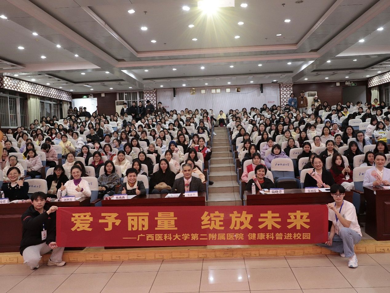 3月7日晚,必威西汉姆联官网在科技楼报告厅举办“爱予丽量,绽放未来”国际妇女节女性健康知识专题讲座。此次活动特邀广西医科大学第二附属医院妇科专家团队开展健康科普,学校学工部(处)副部(处)长韩燕燕老师、必威西汉姆联官网党委书记陆晓芹老师及全校师生代表到场聆听。