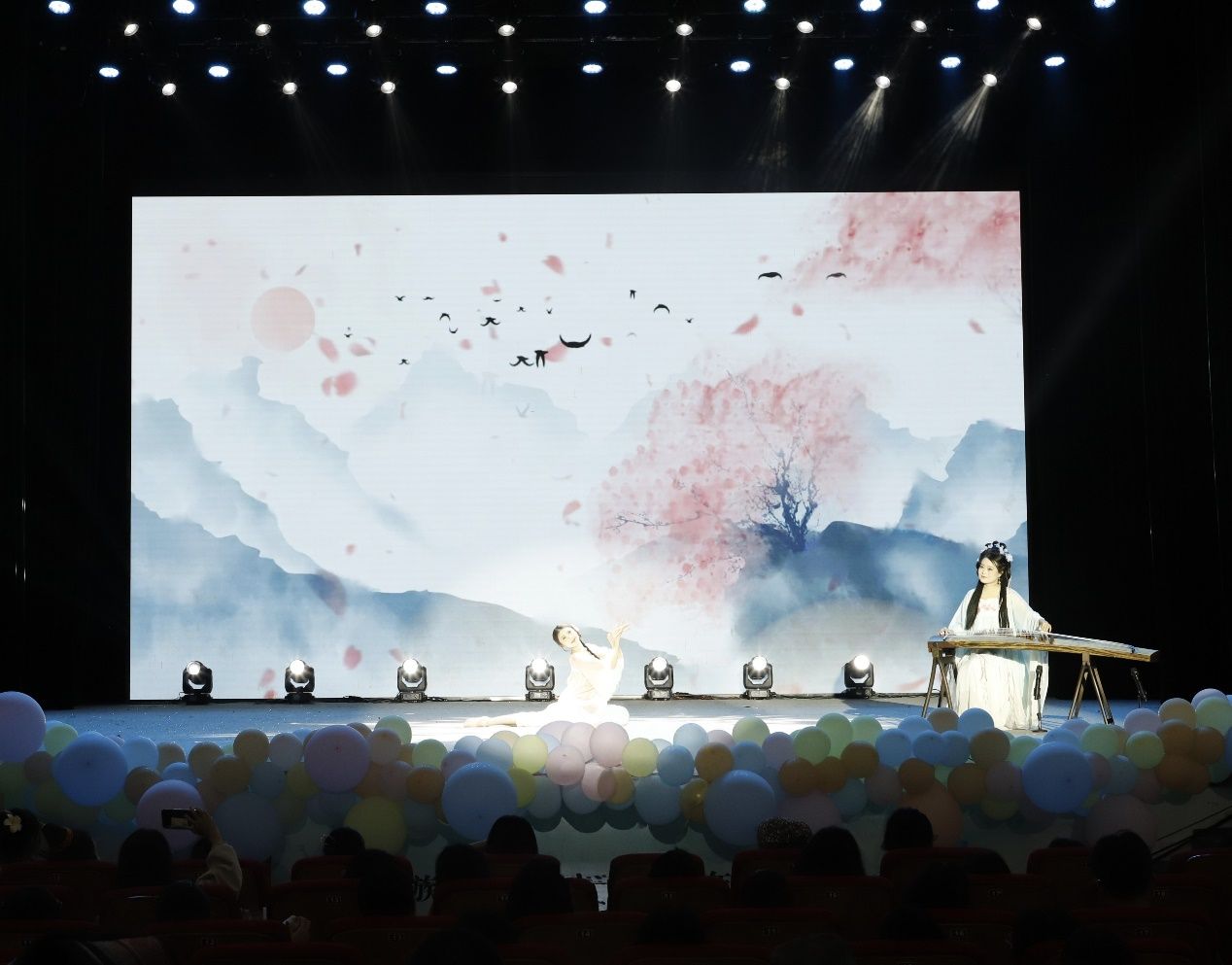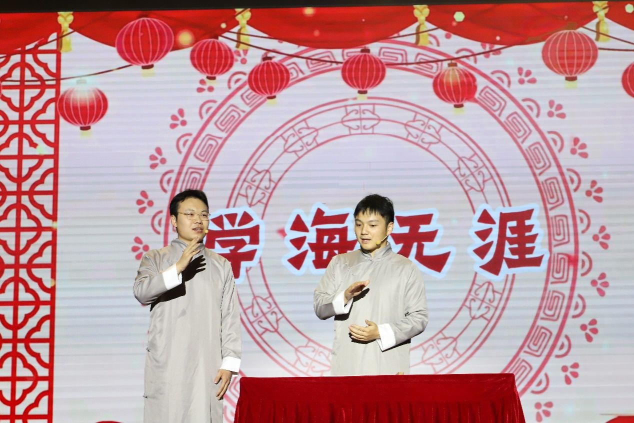 在尖叫声中,晚会进入第二篇章。文艺部与欲晓艺术团的《浴火》中,舞者化身涅槃凤凰,用炽热肢体语言诠释文院学子初心。2024级国际中文教育研究生带来相声《学海无涯》,以幽默讲述求学百味,引发观众共鸣。2024级国际中文教育专业研究生的古筝独舞《繁花》,琴音空灵、舞姿曼妙,千年古韵与青春风采交织。民族学与社会学学院如虹艺术团带来的舞蹈《相亲相爱》,展现民族文化交融,奏响民族团结乐章。主持团朗诵《和园别叙,相思寄远》,深情诉说校园眷恋与未来期许。