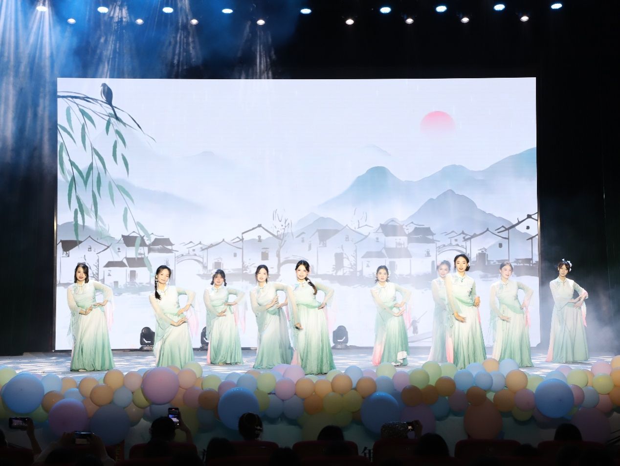 台词逗趣笑声漾,舞蹈灵动绽光芒。2024级汉语言文学卓越人才实验班带来的三句半《梦想放飞毕业季》用轻松幽默的台词和语调,给毕业生们送上诚挚的祝福。烟雨入江南,山水如墨染。文艺部和欲晓艺术团带来的舞蹈《烟雨行舟》带领观众们一同走进烟雨江南,感受浪漫朦胧的山水。小品《老师的烦恼》引得现场观众笑声连连。2023、2024级汉语言文学老挝留学生们献上舞蹈《祝福》,用老挝的舞蹈文化给全体毕业生以及现场的师生送上满满的祝福。