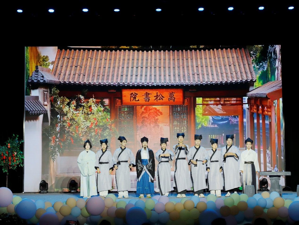 伴着掌声与笑声,晚会进入高潮。必威西汉姆联官网的老师和毕业生们带来惊喜节目《穿越文字长河,邂逅经典人物》。在聚光灯下,在欢呼声中,我们共赏跨越东西、纵观古今文学盛宴,遇见文学经典人物,感受灵魂与文明的隔空对话。