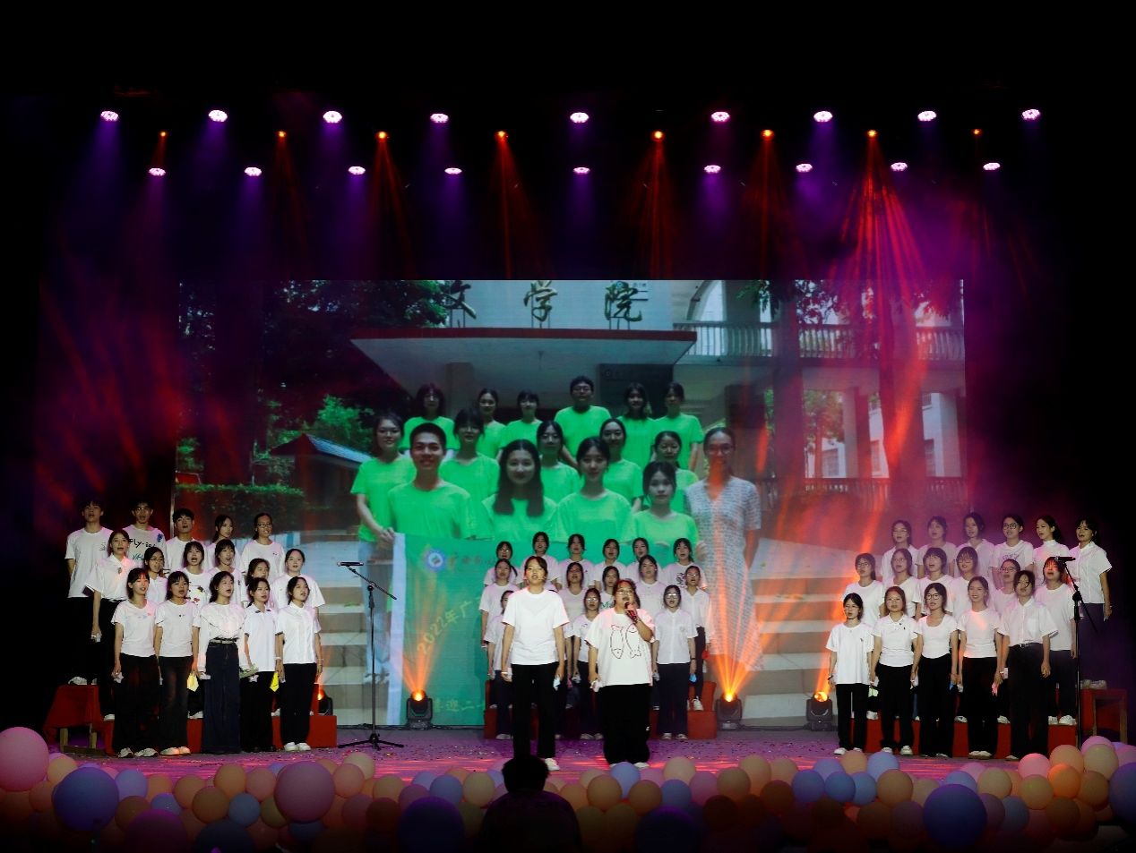 分别是人生的常态,离别是为了更好地重逢。文艺部和欲晓艺术团带来舞蹈《再次重逢的世界》,观众跟随舞者的步伐,感受重逢的美好与热烈。带着扣人心弦的疑问,好奇与猜测的涟漪迅速在晚会中扩散开来。欲晓话剧团取材民间传说“梁山伯与祝英台”,用小品《万松书院》为观众揭晓答案。幽默的语言,有趣的情节,引得观众笑声连连。再绚烂的烟火,也会有落幕的一天,即使痛苦但却闪耀,这是属于我们的流金岁月。2021级汉语言文学5班带来的《One Spark》向我们诉说着:青春是一场盛大的狂欢。“太阳”“相遇”“掌声”,听起来是那么的充满希望,正如毕业学子们熠熠生辉的未来将布满鲜花与掌声。由2023级汉语言文学3、4、5班和2024级汉语言文学师范1、2班同学共同带来的合唱《青春三部曲》,他们一起奏响青春的大合唱,共赴青春之约!