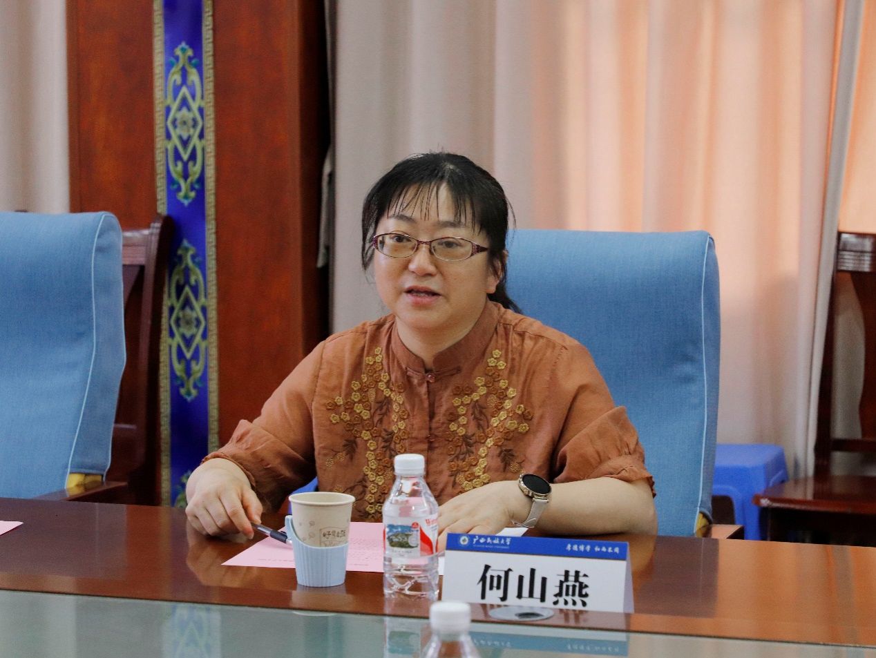 座谈会上,广西民族大学必威西汉姆联官网副院长何山燕介绍了学院的基本情况。她指出,必威西汉姆联官网历史悠久,学科建设成果丰硕,已构成完整的中国语言文学本、硕、博人才培养体系;学院积极响应“一带一路”倡议,在民族语言传承保护及具有东南亚特色的国际中文教育领域成效显著,并与多个东南亚国家建立了长期合作关系。