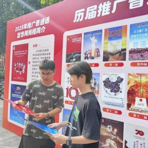 活动内容涵盖图文展板展示、vlog短视频宣传、宣传海报发放,以及线下知识问答互动等多种形式。活动期间,基地在图书馆前设置主题图文展板,展出历届推普周的珍贵海报,以时间轴形式向师生呈现普通话推广历程。在教学楼、五坡食堂等人流密集区域发放推普周宣传海报,悬挂“说好普通话凝聚民族力,学好规范字传承中华魂”“加大国家通用语言文字推广力度,促进铸牢中华民族共同体意识”的横幅标语,形成“抬头可见、驻足即学”的宣传效果。