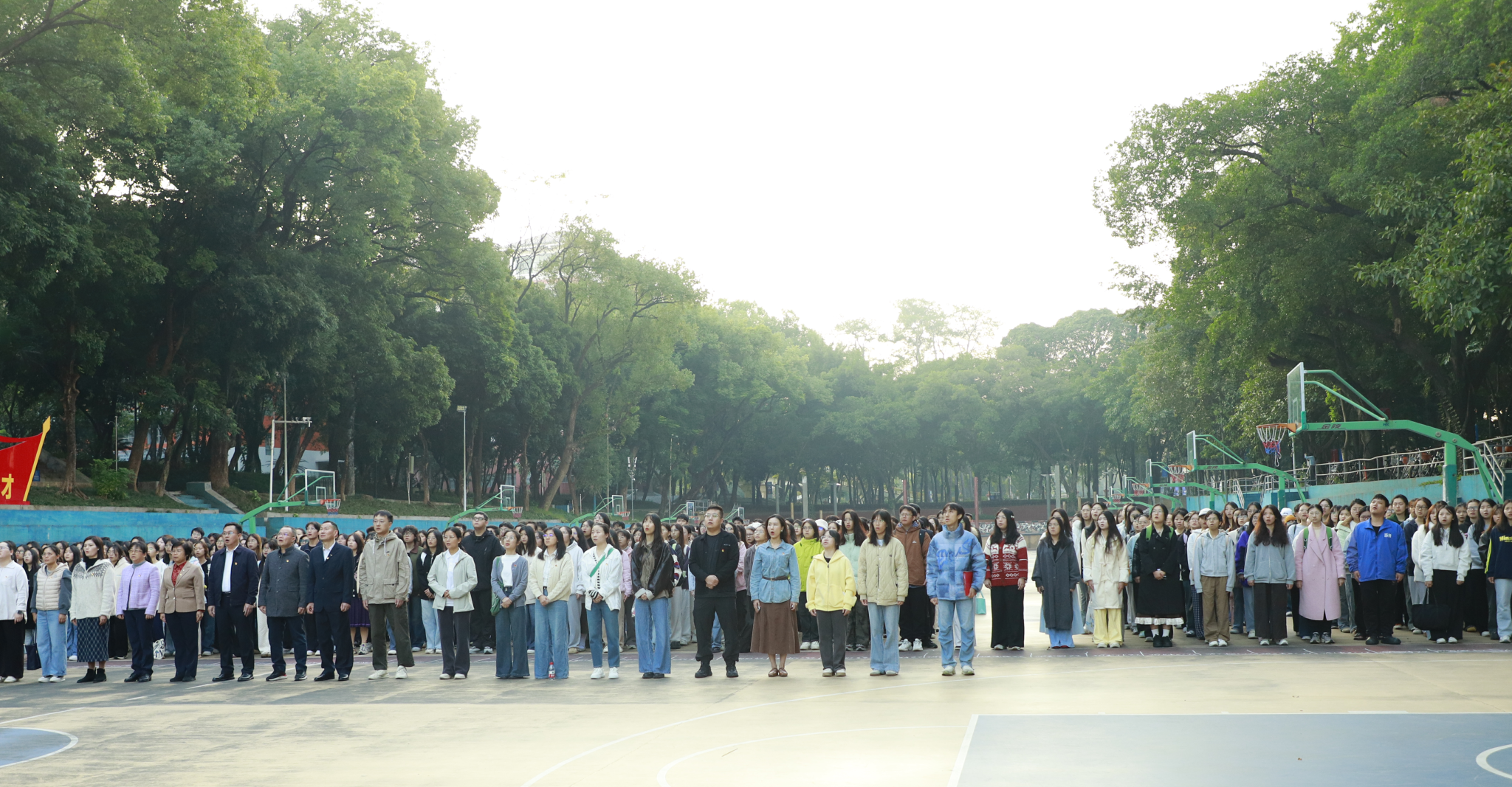 11月24日,我院全体师生齐聚灯光球场,举行庄严的升旗仪式。本次升旗仪式由2024级汉语言文学1班余振禾同学主持。