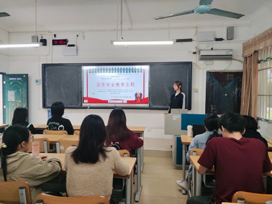 会上,由各班辅导员带领同学们观看“千万高校学生同上一堂国家安全教育课”公开课,参加“全国大学生国家安全知识答题”活动,现场宣读《国家安全倡议书》。各班班干围绕国家安全的种类、危害国家安全的行为、如何维护国家安全、谁来维护国家安全等内容展开学习,对维护国家安全相关防范知识和技能等进行宣传。同时,各班还组织了线上趣味答题,检验同学们对国家安全知识的掌握情况,促进他们对国家安全的深入理解和认识。