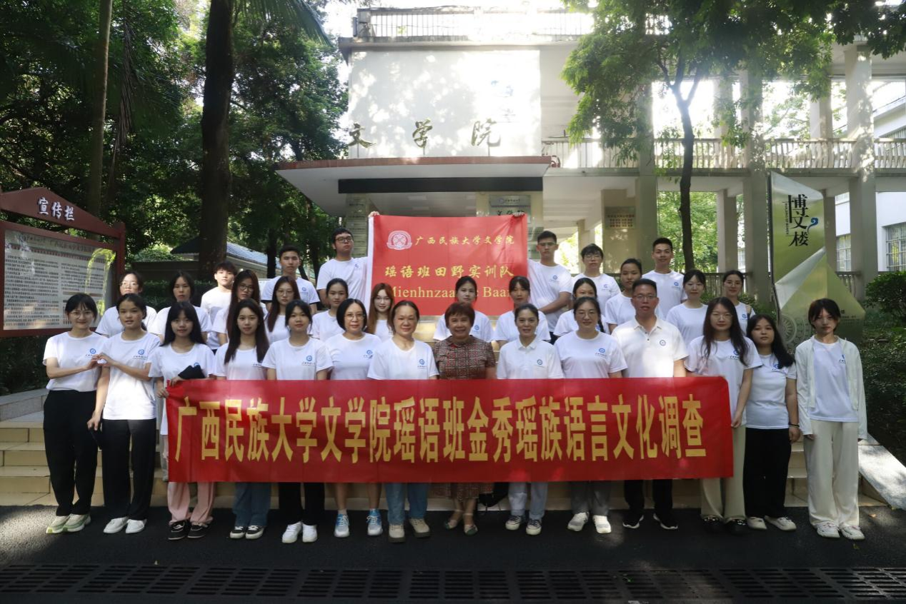 7月15日至7月26日,广西民族大学必威西汉姆联官网2023级中国少数民族语言文学专业瑶语班22名本科生在指导老师盘美花、石丽芳、俸娟秀及4名研究生助手的带领下,赴金秀瑶族自治县开展为期12天的田野实训。必威西汉姆联官网党委书记陆晓芹教授予出发当日为实训队送行并寄以重托。实训期间,得到当地相关部门、村委的大力支持和村民密切配合,使实训队调研工作得以顺利开展。