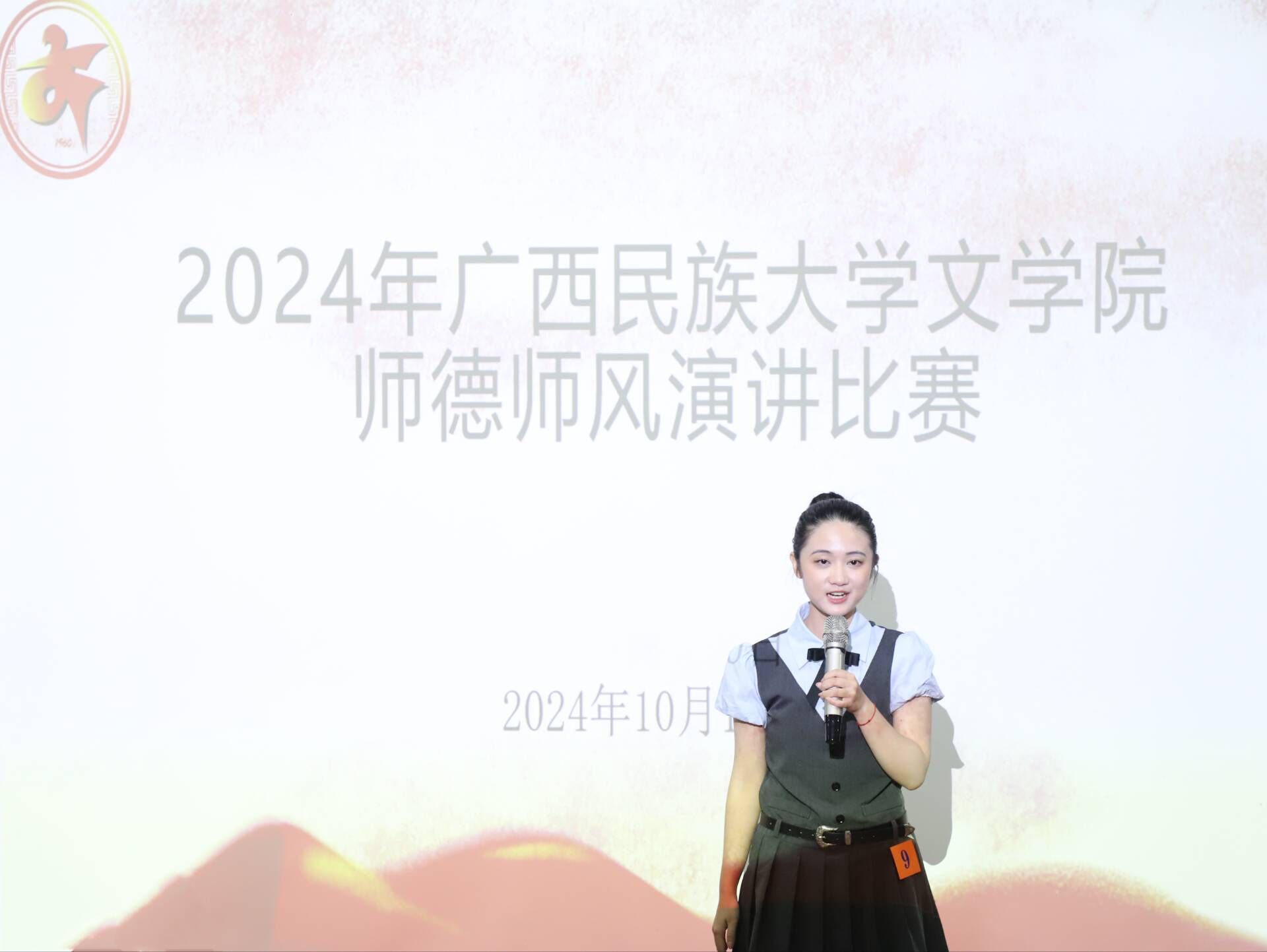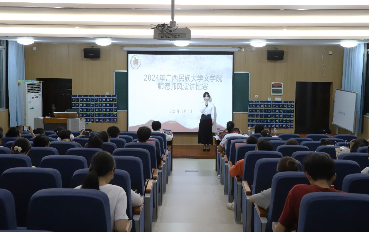 春风化雨,润物无声,为加强师德师风建设,弘扬崇高师德风气,10月10日晚,必威西汉姆联官网在博文楼一教一梯举办以“弘扬教育家精神,加快建设教育强国”为主题的师德师风演讲比赛。本次比赛邀请语文教研室吕晓燕老师、赵筠老师以及吴侠老师担任评委,必威西汉姆联官网学生到场观赛。