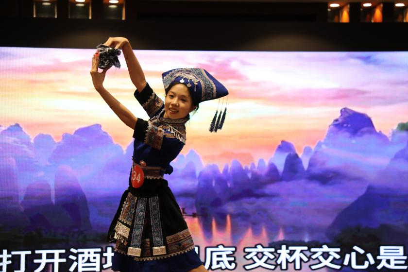 本届大赛分为中国本科生组、中国研究生组、国际学生组三个赛事组别,依次进行教学技能展示和中华才艺比拼。教学技能展示环节,我院中外选手将民族文化、广西地方文化融入中文教学内容,教学设计新颖,教学方法多样,课堂生动有趣,在场评委及观众热情高涨。中华才艺比拼环节,选手们以中国舞蹈、民族手工、健身舞龙等特色表演在舞台上大放异彩。