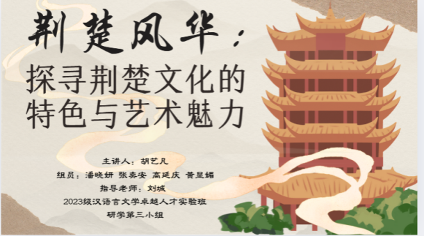 本次汇报内容包括《可触之梦,能见之神:神话视域下的楚国文物纹祥》《荆楚风华:探寻荆楚文化的特色与艺术魅力》《登楼寻意,笔落鹤鸣:黄鹤楼诗词的情感脉络与时代回响》《千年诗韵,一楼风华——论黄鹤楼的浪漫诗学与地理美学》等多个主题,内容涵盖荆楚文化的神话、艺术、诗词、历史发展策略、红色资源利用以及英雄精神演变等多个方面,全方位展示了对荆楚文化的深入研究与探索成果。