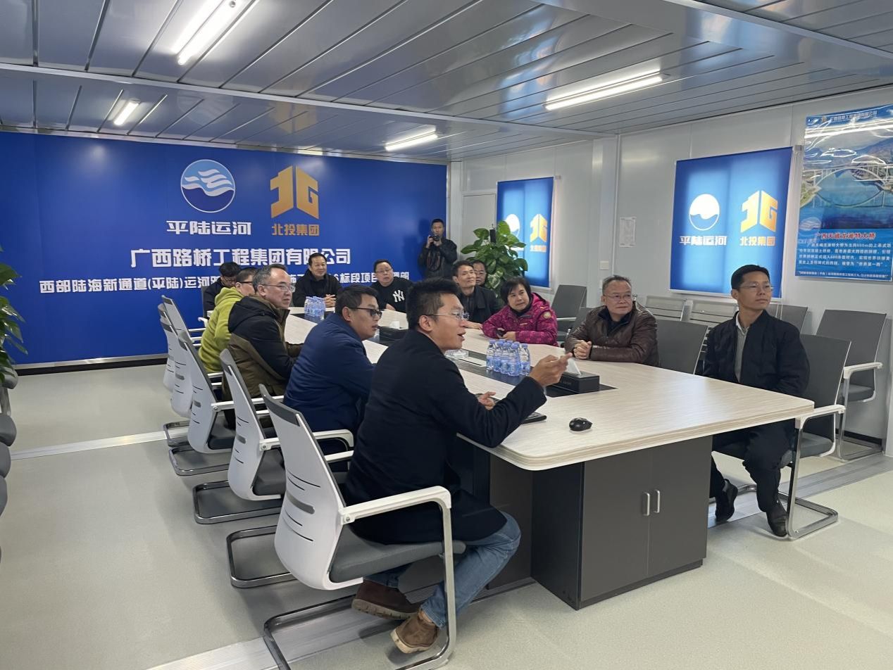 为积极响应国家关于促进高校毕业生就业的号召,深化校企合作,拓宽学院学生就业渠道,1月14-15日,学院党委书记陆晓芹、副书记吴先源率队赴平陆运河集团开展访企拓岗活动,黄玲、陈爱中、董迎春、颜色星、周楷棋等老师参与调研。广西路建集团副总经理刘海林、平陆运河桥梁2标项目书记梁开洪、项目经理李臣光、桥梁6标项目经理刘祥等集团领导热情接待。