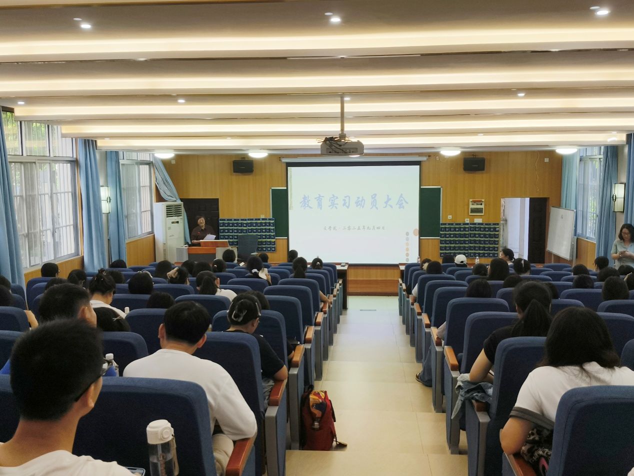 9月4日,为引导学生做好实习前的各项准备,保证实习工作的顺利开展,必威西汉姆联官网在博文楼一教一梯召开2026届汉语言文学师范专业毕业生教育实习动员大会,语文教研室主任吕晓燕老师主讲,必威西汉姆联官网党委副书记吴先源及蒙银菊、罗莹钰、罗红流、赵筠、吴侠、李燕玲等老师出席动员大会,2022级汉语言文学师范1、2班全体同学参会。