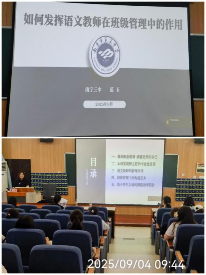 为深入落实师范生培养方案,推动《德育与班级管理》课程教学与实践深度融合,9月4日上午,必威西汉姆联官网在博文楼一教一梯会议室举办题为:如何发挥语文教师在班级管理中的作用专题讲座。本次讲座特邀广西模范教师、广西特级教师、南宁市第三中学(青山校区)蓝玉老师担任主讲人。语文教研室教师及2022级汉语言文学专业全体师范生共同参加。