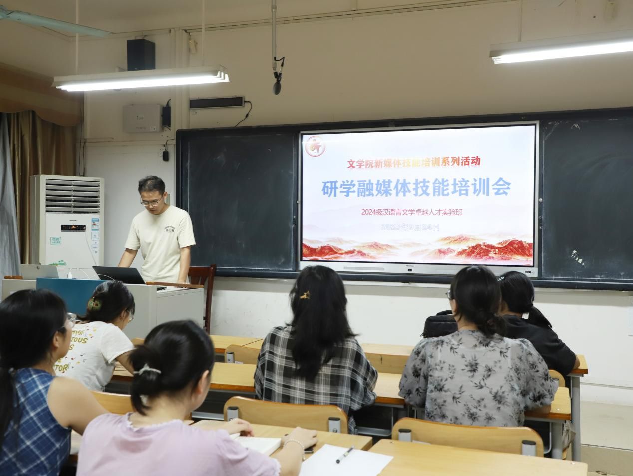 9月24日晚,必威西汉姆联官网2024级汉语言文学专业卓越人才实验班在博文楼201教室召开研学融媒体技能培训会。会议由方仕仗、陈思颖同学主讲,2024级汉语言文学专业卓越人才实验班同学到场学习。