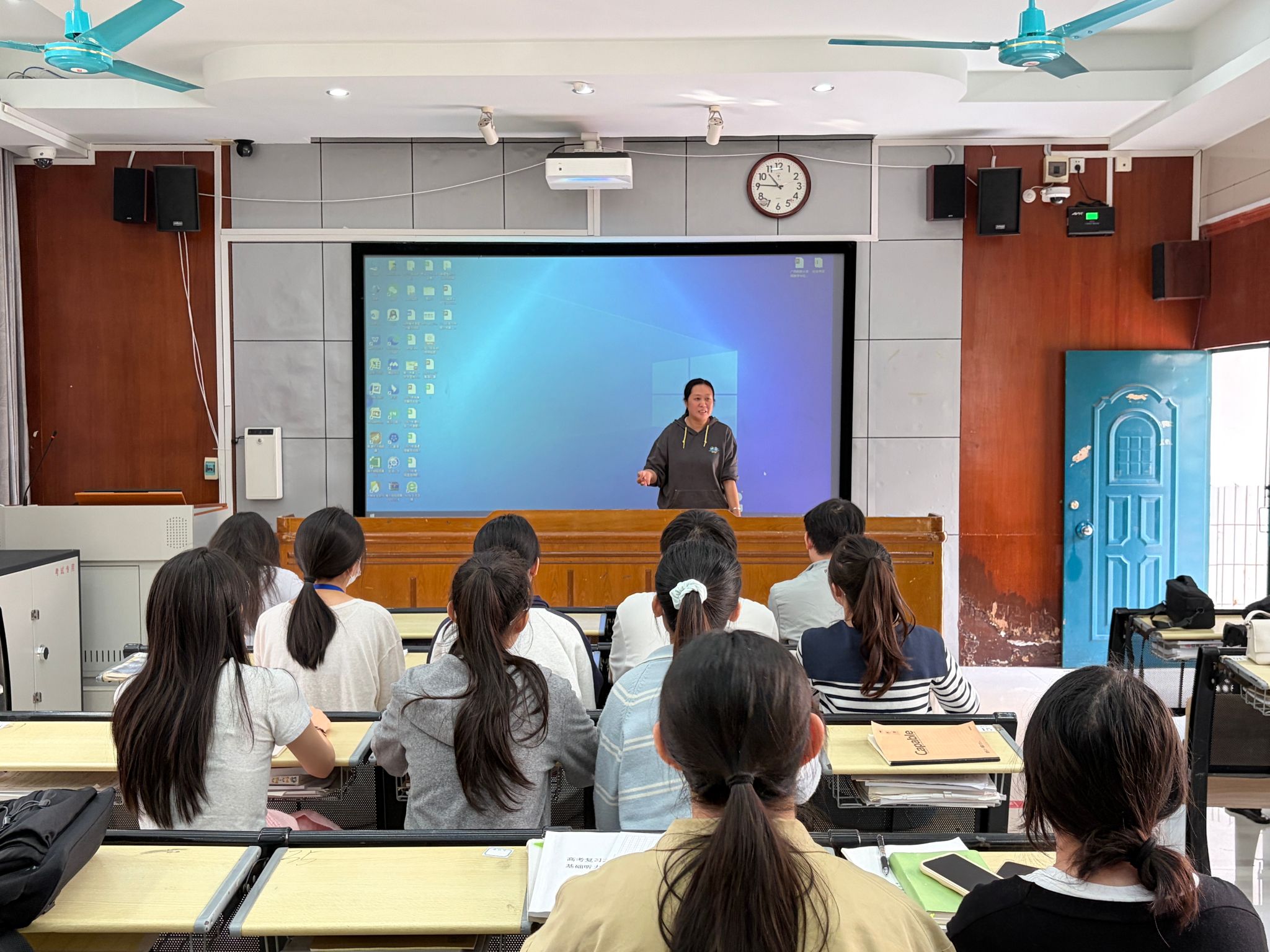 广西民族大学实习带队教师李燕玲老师发表感言,衷心感谢南宁市第二十中学指导老师们的悉心教导。她指出,黎霄老师的汇报课充分展现了扎实的教学基本功,成功将新课标的情境教学理念转化为课堂实践。李老师表示,本次实习成果汇报,清晰地展现了全体实习生在教学设计、课堂驾驭等教学能力上的显著进步。她希望同学们能珍视并内化好这份宝贵的实习经验,为接下来的学业精进与职业发展奠定坚实基础。