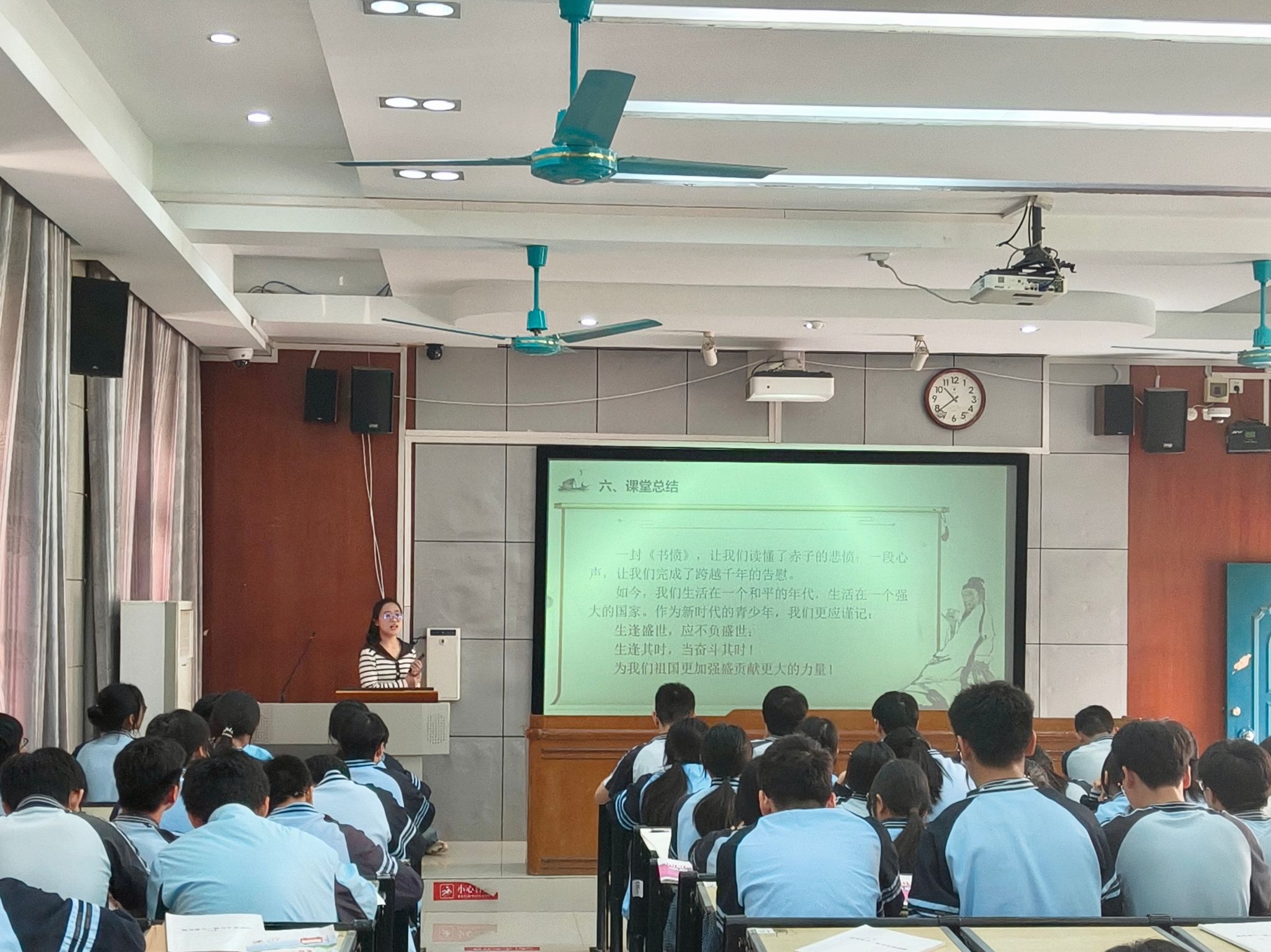 课后研讨环节,指导教师朱晶晶指出,本节课教学效果显著,获得圆满成功。尽管前期备课时间较为有限,且教学内容《书愤》本身具有一定难度:既需深入阐释爱国情怀并与当代现实相联结,又需兼顾写作训练的融合,对教学设计与实施提出了较高要求,但从课堂效果来看,黎霄老师表现出了明显的进步,整堂课推进顺畅、目标清晰。