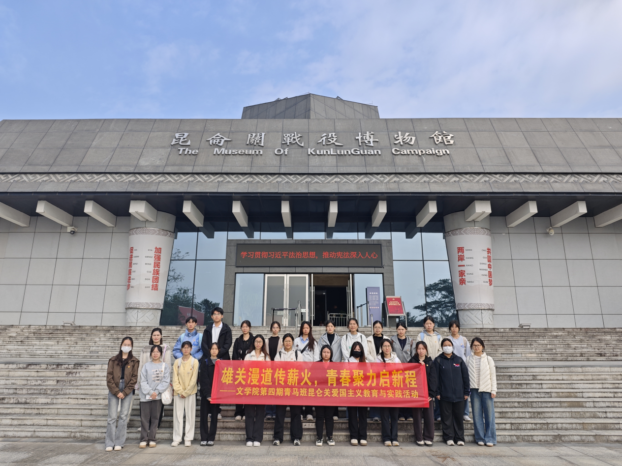 为深入学习贯彻党的二十大精神,强化思想政治引领,筑牢青年红色根基,12月7日,必威西汉姆联官网组织第四期青马班学员及学院骨干,赴昆仑关全国爱国主义教育基地开展主题教育活动。