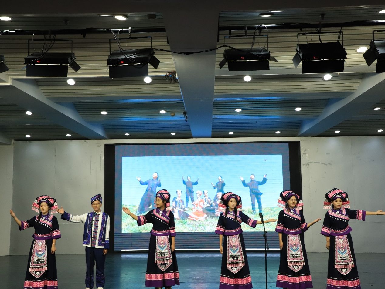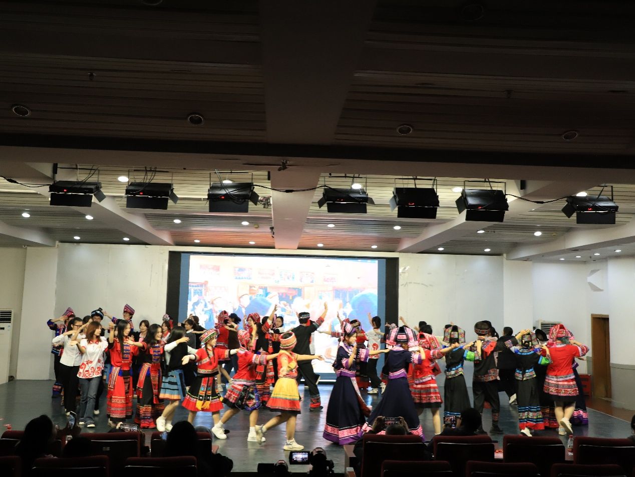 晚会以《圆舞曲》欢快收尾,师生与嘉宾携手起舞,现场洋溢着民族团结、融洽欢愉的氛围。本次活动生动展现民族语言文化与瑶族文化的独特魅力,为学生提供展示才艺、交流互鉴的平台,进一步推动中华优秀传统文化的校园传承与创新实践,有效增进广大师生的文化认同与集体凝聚力。