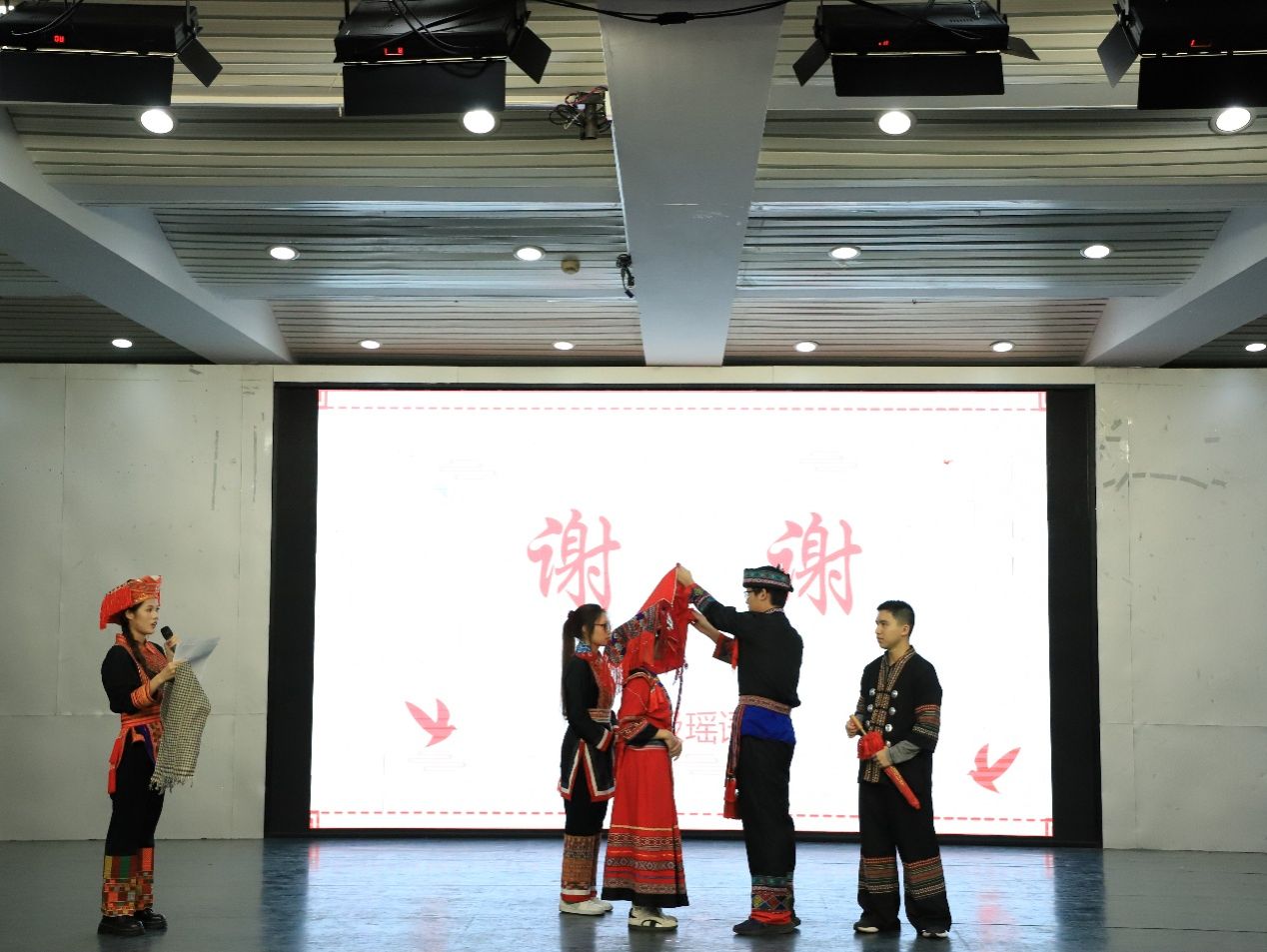 12月5日晚,必威西汉姆联官网在大学生活动中心201举办第四届民族语言文化展示会暨瑶族盘王节文艺晚会,陈金文、韦远诚、盘美花等教师代表受邀出席。师生欢聚一堂,领略民族语言魅力,共赏盘王文化风采。