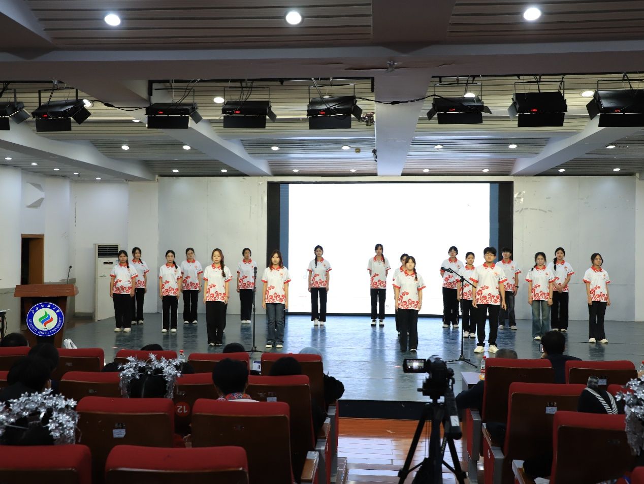 长鼓织瑶,歌舞共鸣。2024、2025级中国少数民族语言壮语班依次登台,以质朴唱腔奏响歌曲《欢迎您到壮乡来》《织机谣》,用绵延语调朗诵《你是人间四月天》,尽显壮乡民族风情;老挝留学生带来歌舞《坐着火车去中国》,歌咏两国山海情谊;2023、2024、2025级中国少数民族语言瑶语班先后唱响《白裤瑶敬酒歌》《蝴蝶歌》等曲目,展示瑶族音乐的独特韵味;2025级教育学1班舞蹈《大喜》翩跹而至,以优美舞姿传递出对生活的美好祈愿。