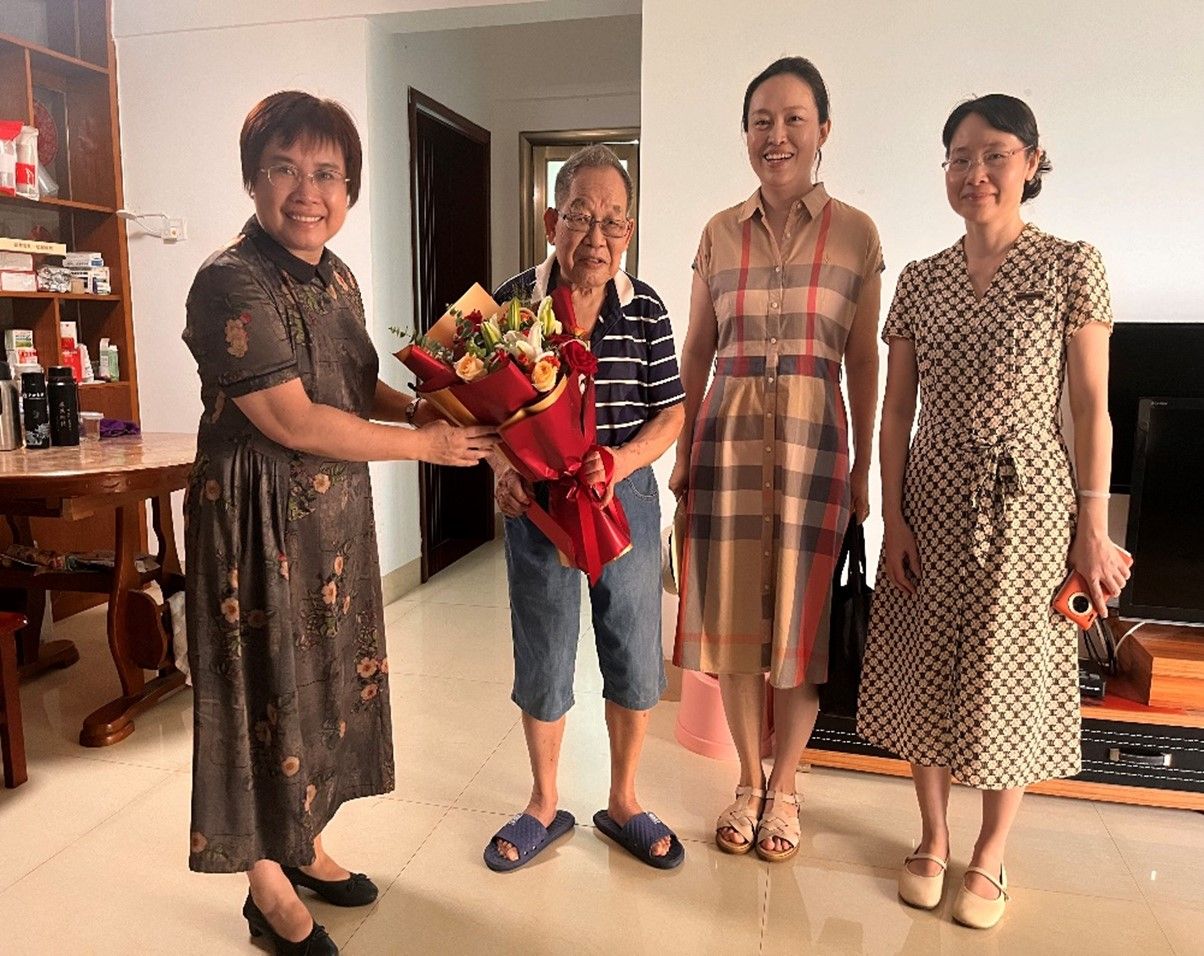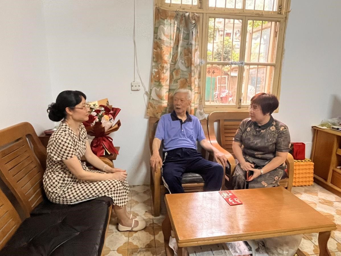 学院党委委员陆晓芹、范潇潇及教师代表李惠玲前往老党员的家中慰问,分别慰问了老党员谭行同志和覃登科同志。领导老师与老党员促膝交谈,询问他们的健康状况、衣食住行、生活需求等情况,为他们送上节日的祝福,并感谢他们为学院作出的贡献,希望他们多保重身体,继续支持学院的工作。