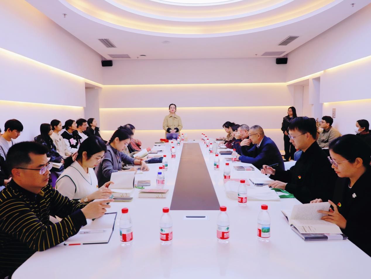 吴先源副书记作总结发言。他肯定学院“家文化”育人平台的建设成效,指出当前人才培养与学风建设方面存在的问题,强调要以“家文化”凝聚师生力量,注重提升书写与语言表达能力,严守纪律底线。