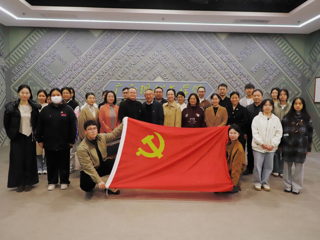 师生党员在广西现代文学馆合影留念
