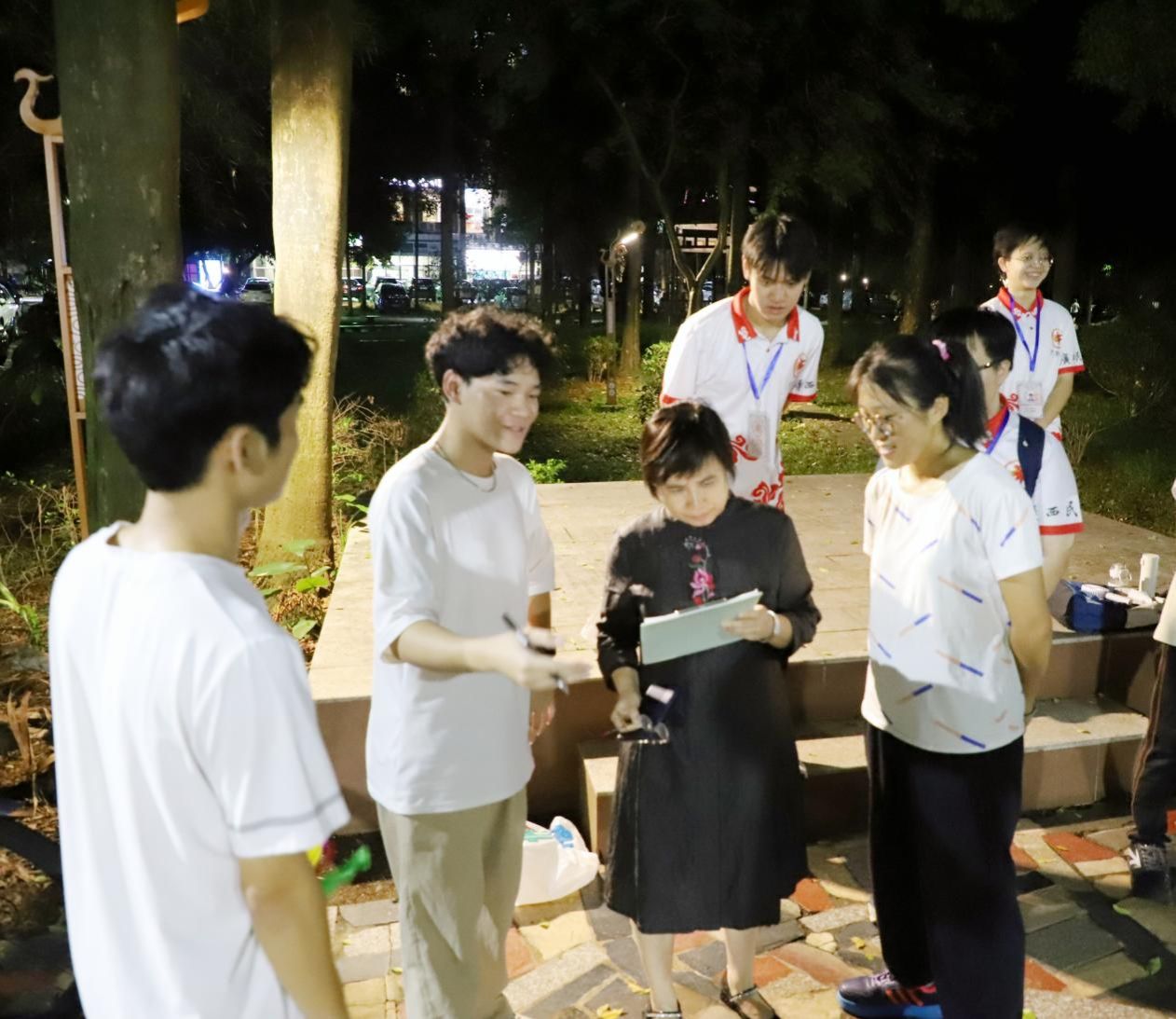 毽球队领队林国德向领导老师介绍这段时期的训练和考核模式,他表示,毽球队比赛项目时间紧、任务重,队员们抓紧时间练习,各自练习单踢,或三五成群练习对踢。毽花飞舞,活力无限,老师们对此赞叹不已。