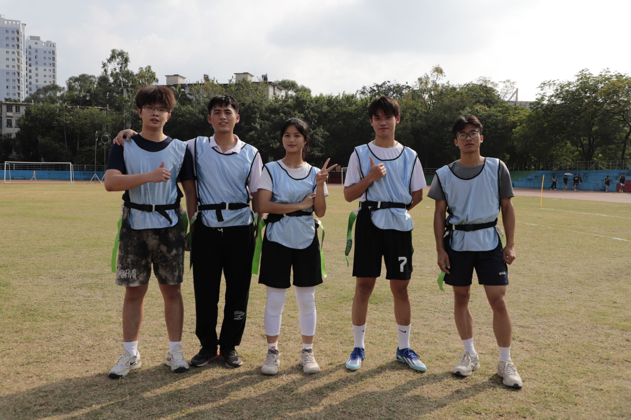 为丰富校园体育文化生活,培养学生团队合作和体育竞技精神,10月20日下午,我校首次举办腰旗橄榄球竞赛在各校区田径场激情开赛。我院代表队派出10名队员在相思湖校区参赛。