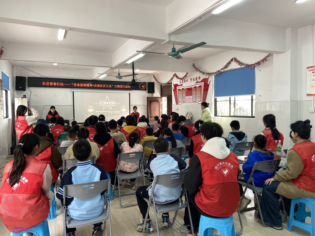 为加深小朋友们对雷锋精神的理解与认识,3月8日,2024级汉语言文学师范1班团支部全体团员前往江南区福建园街道南建社区,开展“传承雷锋精神,点亮社区之光”特色团日活动。