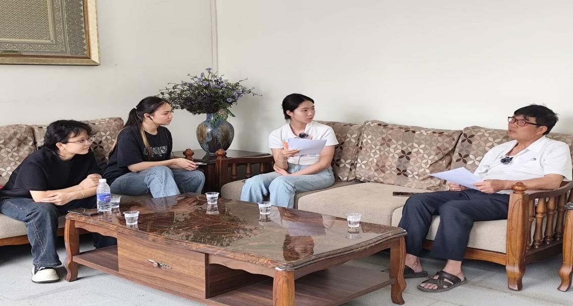 抵达安善村后,调研团队首先采访了三声部民歌传承保护人温建业校长。在温校长家中,队员们围坐一圈,静静聆听传承人讲述三声部民歌的发展历程。从起源时期的田间劳作哼唱,到如今登上文化舞台,三声部民歌始终与安善村村民的生活紧密相连。从独特的发声技巧,到充满乡土气息的歌词创作,再到目前面临的传承难题,温校长都耐心解答,还不时回忆起过去演唱三声部民歌的趣事。