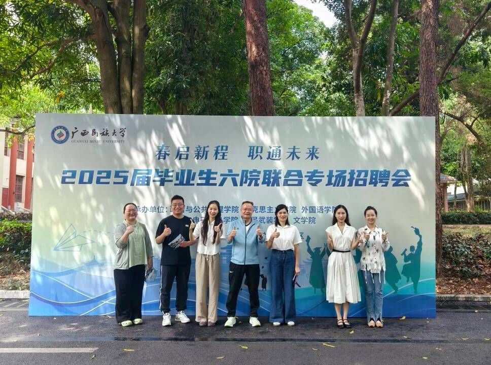 为做好高校毕业生就业工作搭建交流平台,4月28日,必威西汉姆联官网、政治与公共管理学院、马克思主义学院、外国语学院、物理与电子信息学院和人民武装学院六个学院在广西民族大学相思湖校区联合承办2025届毕业生专场招聘会。