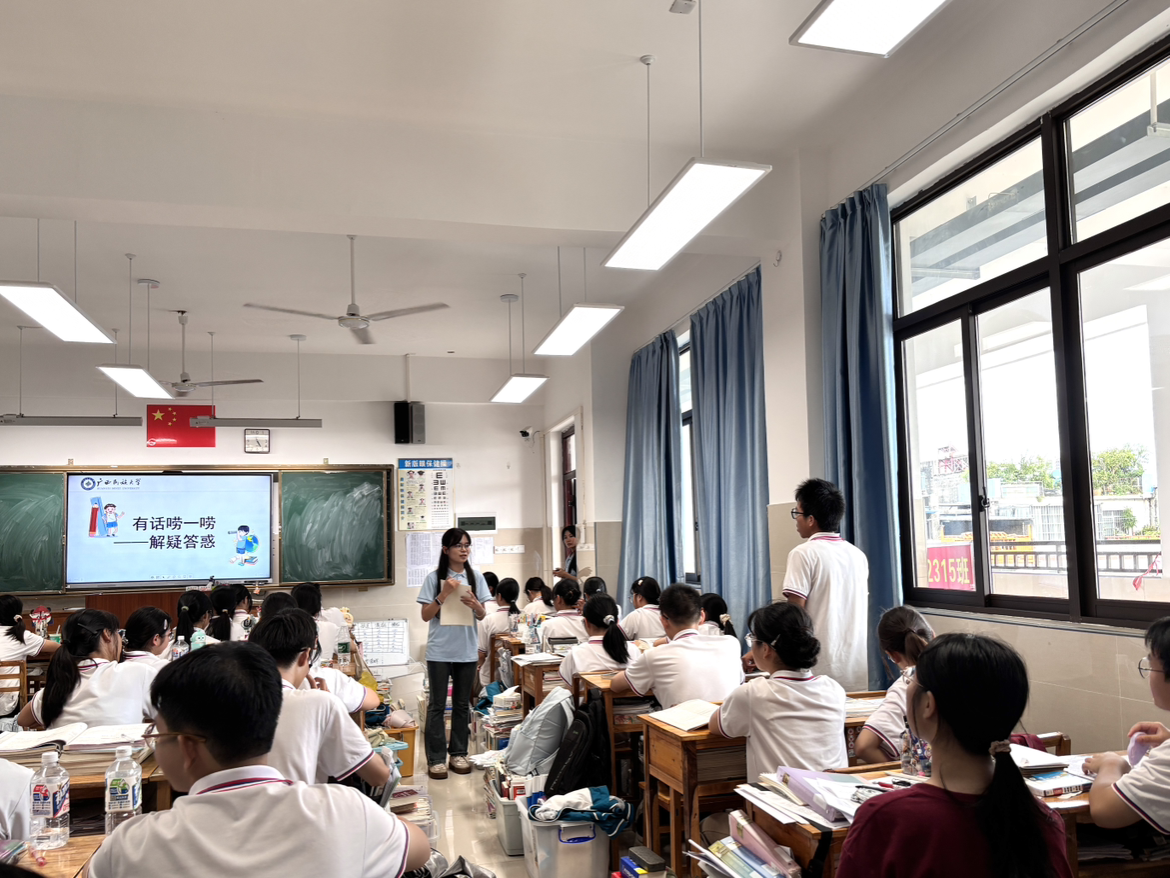 “思源引航”团队先后走进横州市高级中学与横州市第二高级中学,开展校友回访活动。宣讲团成员结合自身求学经历,向高中母校学子分享高考备考经验、大学专业选择技巧及校园生活趣事,针对学弟学妹提出的学习困惑、未来规划疑问,进行耐心细致解答。活动中,宣讲团还通过互动游戏、案例分析等形式,激发同学们的学习动力,帮助大家明确成长方向。