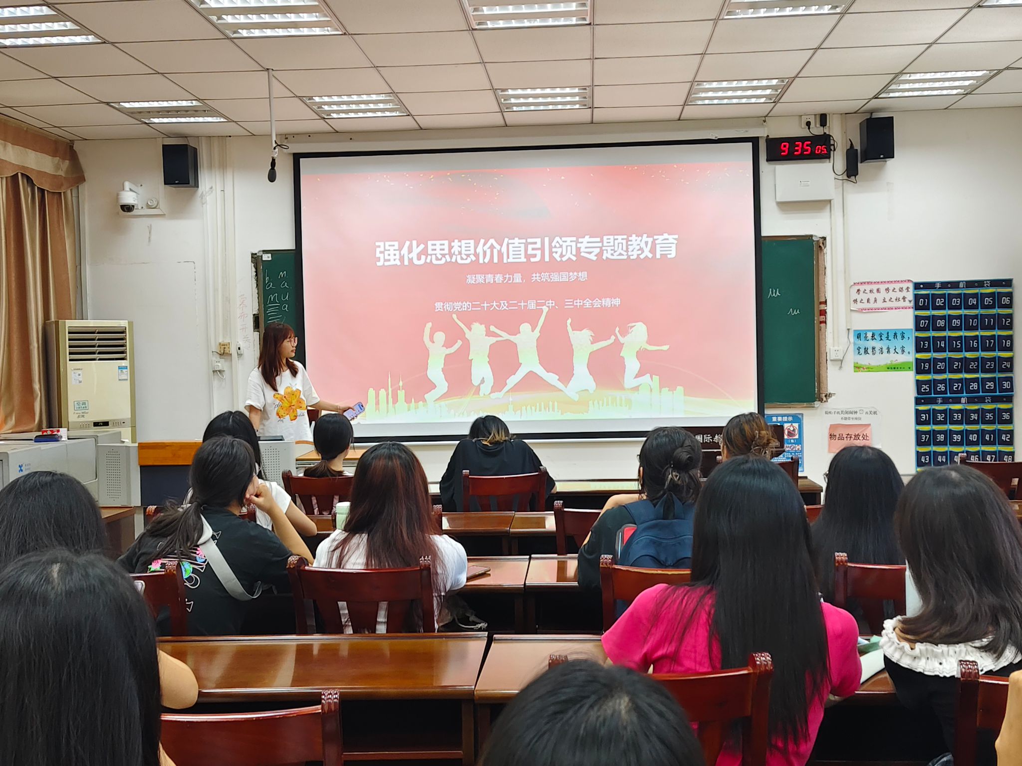 各班围绕思想价值引领、安全意识教育等内容开展班会活动,通过播放红色影片、分享青年榜样故事、组织互动讨论等形式,带领学生回顾党的奋斗历程、明确新学期学习方向,加强安全意识培育,激励文院学子以昂扬向上的姿态投入新学期校园生活。