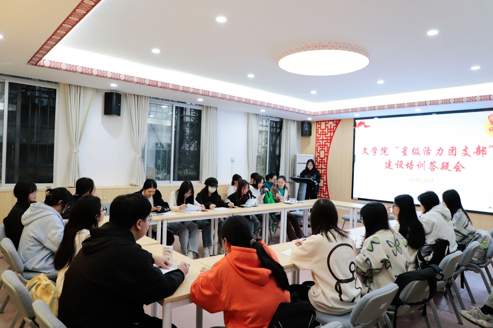 此次培训答疑会的召开,加深了各班级团支部对申报“星级团支部”工作细则的了解,为各班团支部开展“星级活力团支部”建设工作提供具体指导,对推进“星级活力团支部”建设工作具有重要作用。(初审:卢柳媚 复审:范潇潇 终审:叶君 编辑:杜海洋)