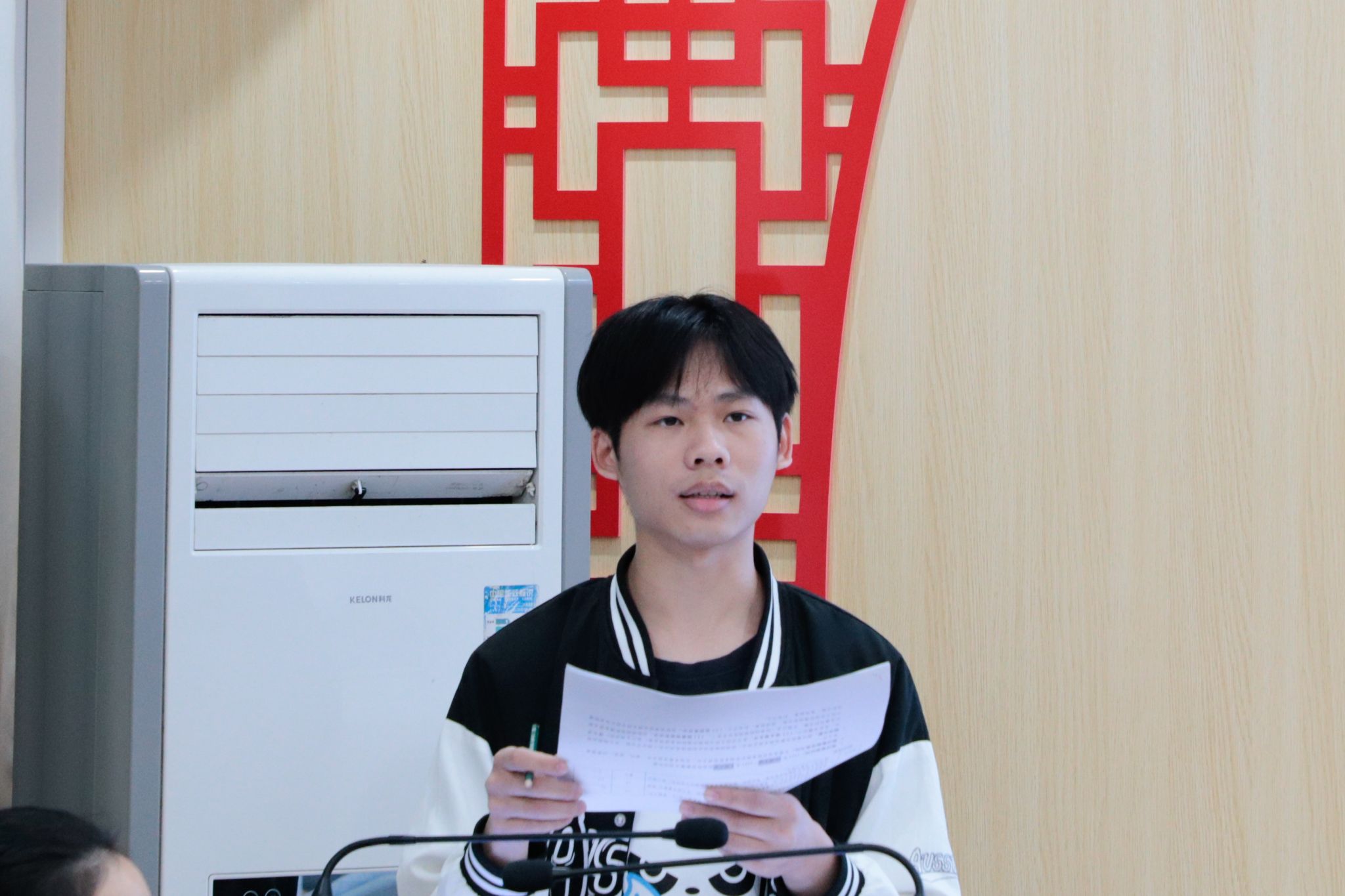 梁承凤同学从文件《共青团广西民族大学委员会关于开展2023-2024学年度“星级活力团支部创建活动的通知》入手,详细讲解材料报送要求。她表示,“星级活力团支部”的建设有利于激发各基层班级团支部活力,是展现团支部凝聚力与班级支部风貌的重要途径,各班团支部要积极参与“星级活力团支部”申报立项。