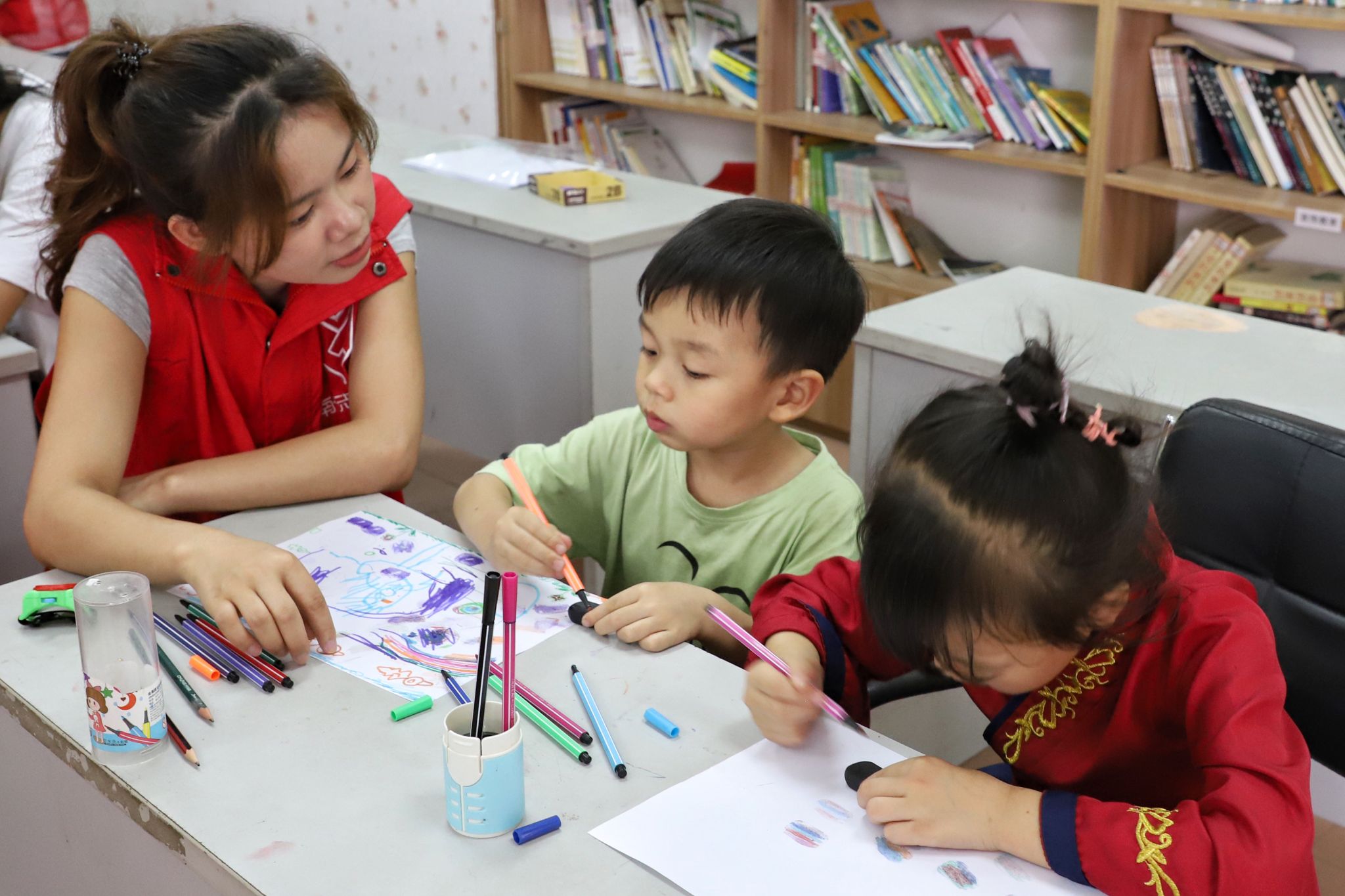 志愿者和小朋友们进行互动