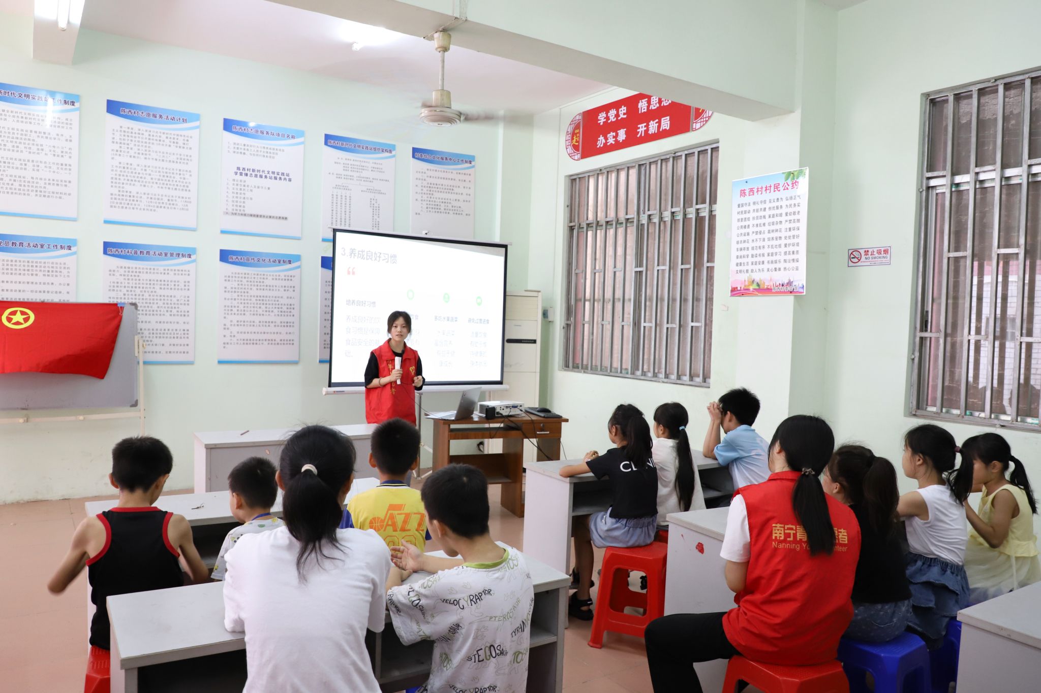为传递健康饮食的理念,促进孩子们的健康成长,5月25日下午,必威西汉姆联官网志愿者前往南宁市西乡塘区上尧街道陈西村新时代实践站开展“合理饮食,健康成长”爱心课堂活动。2023级汉语言文学4班梁容华担任本次活动主讲人。