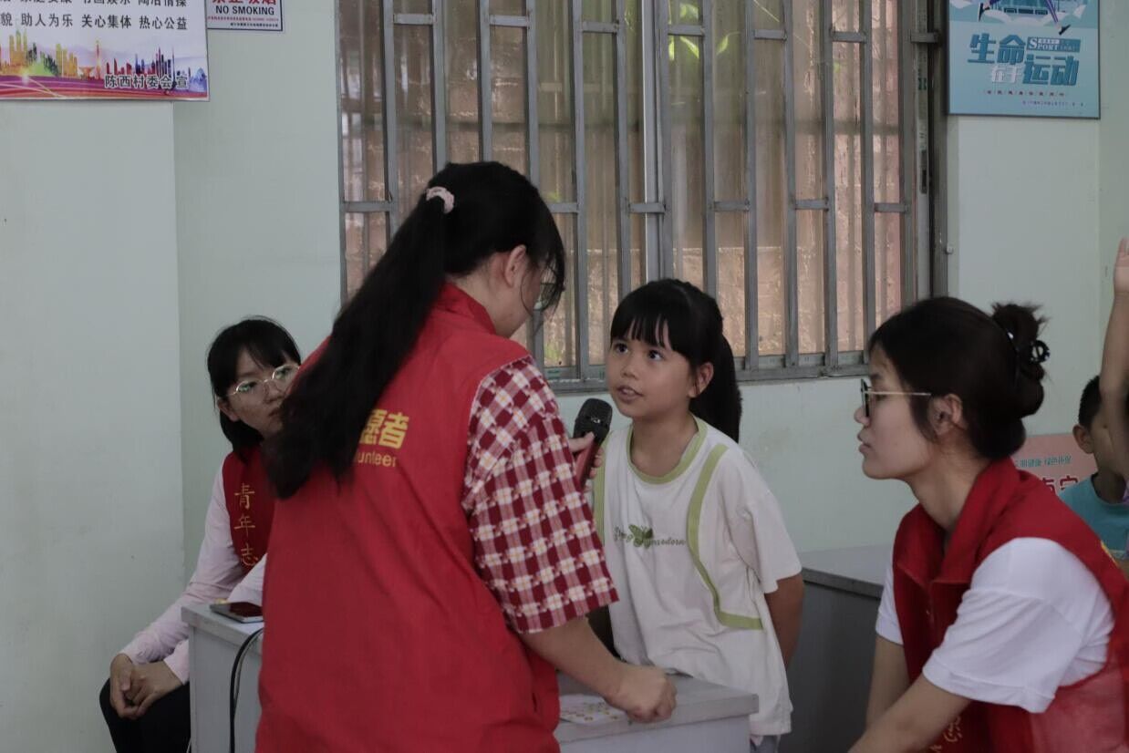 在课堂互动环节,谭素洁同学鼓励小朋友们上台大声朗读陈延年的生平事迹,加深小朋友们对于陈延年的认识。小朋友们积极参与,依次上台朗读,课堂氛围活跃。当谭素洁提问到“陈延年对中国革命有哪些贡献”时,小朋友们踊跃举手回答,同时谭素洁表达了对小朋友们的鼓励,引导小朋友们树立正确的价值观。