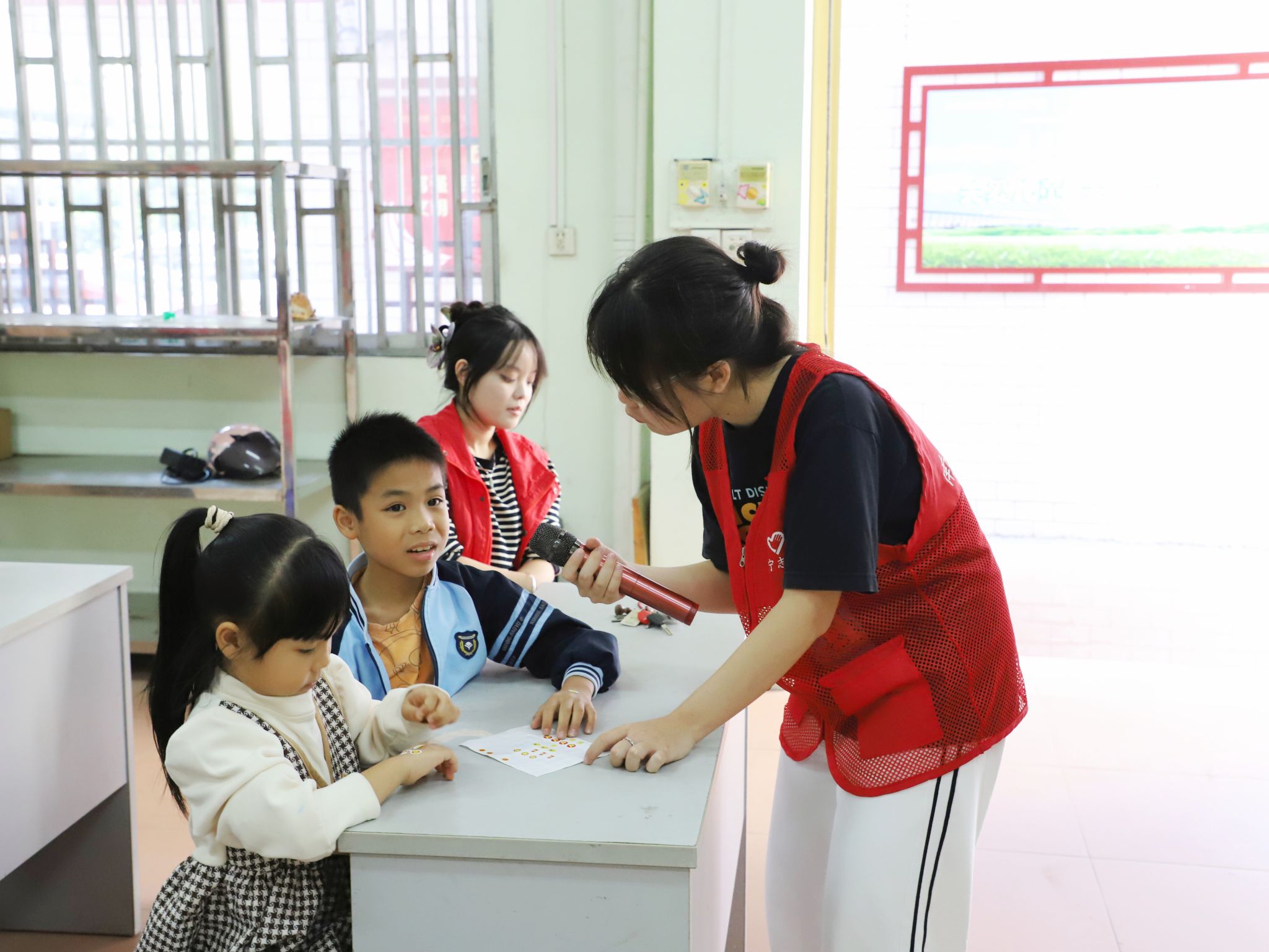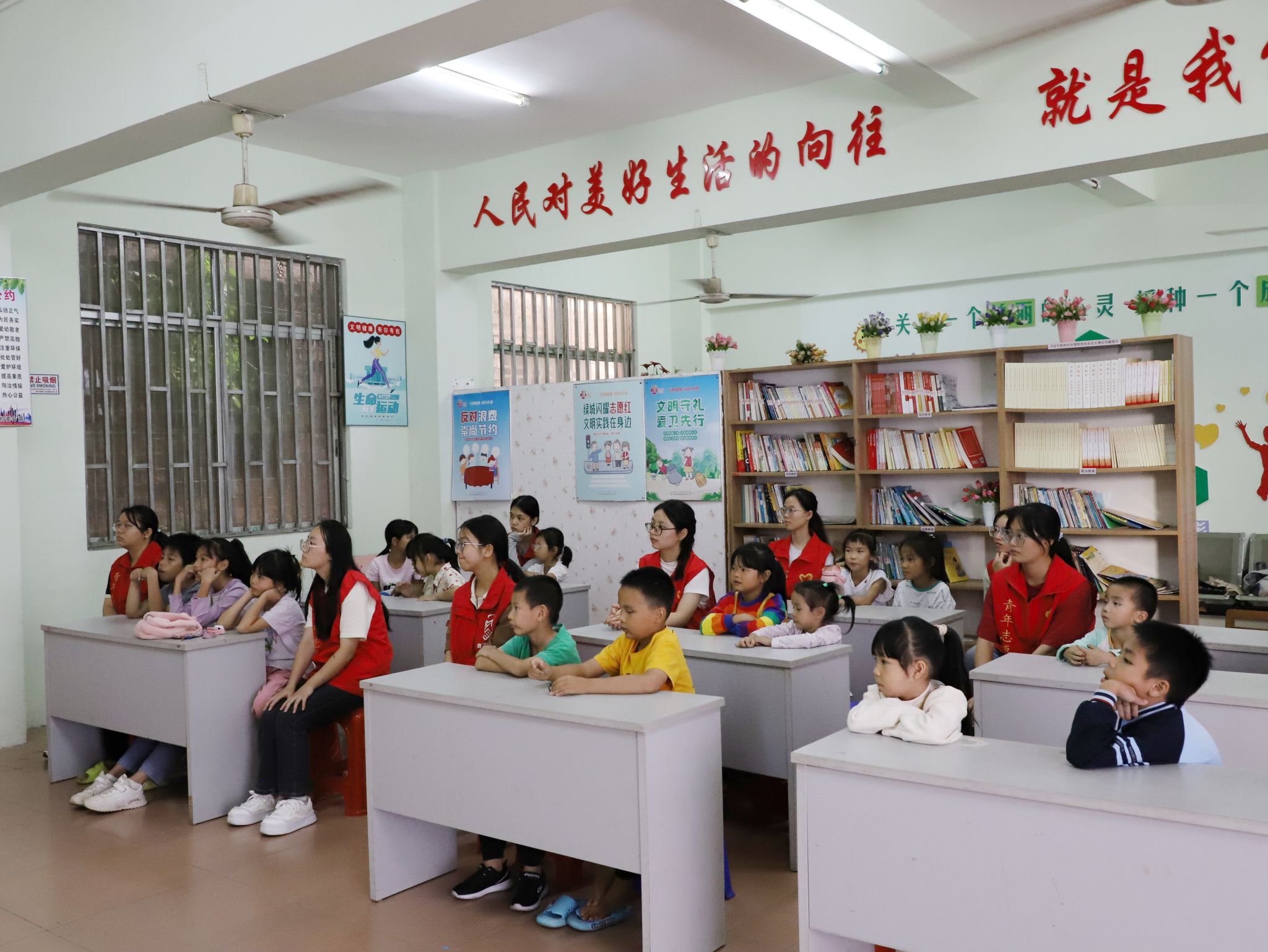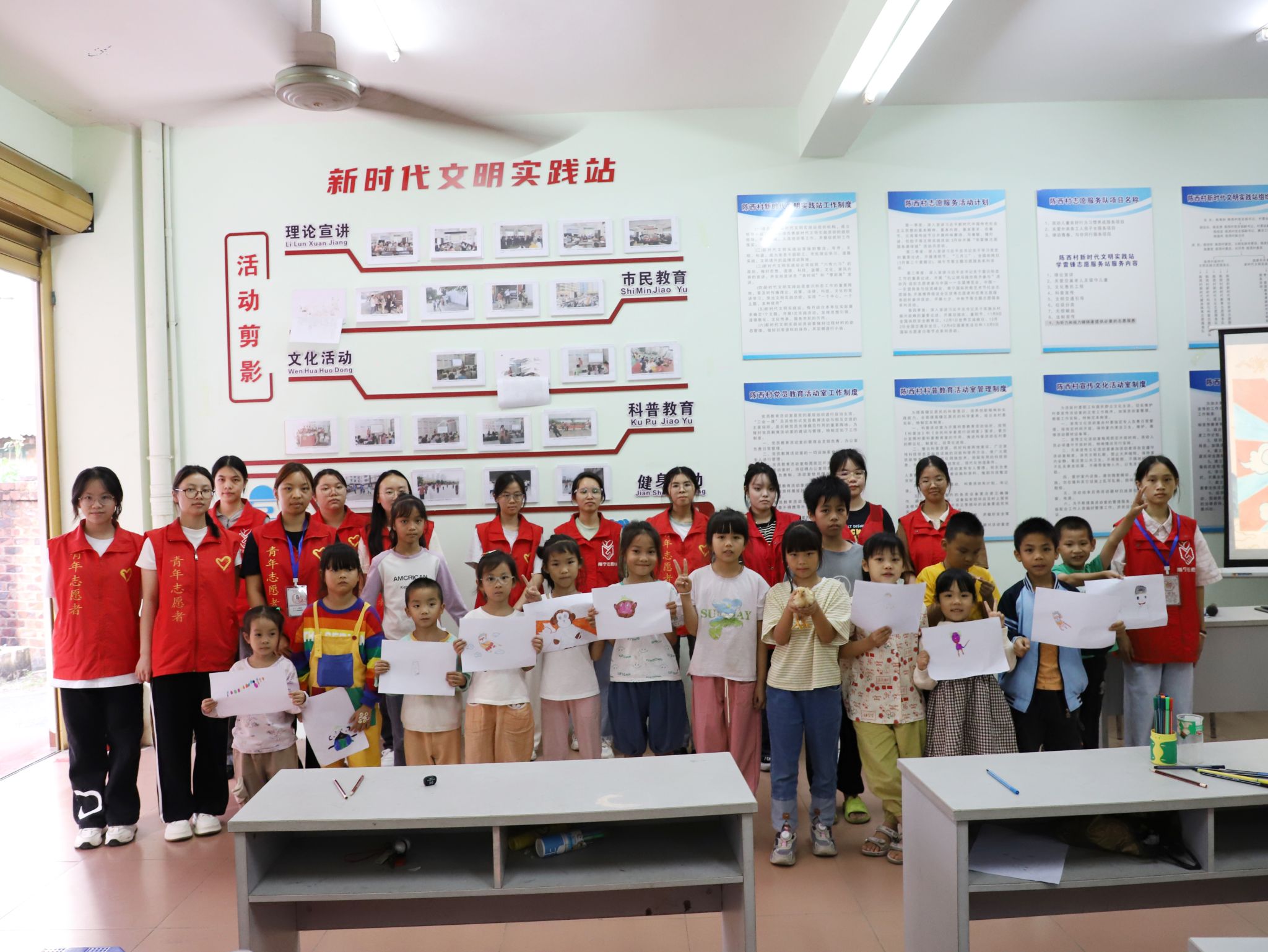 志愿者和小朋友们合影
