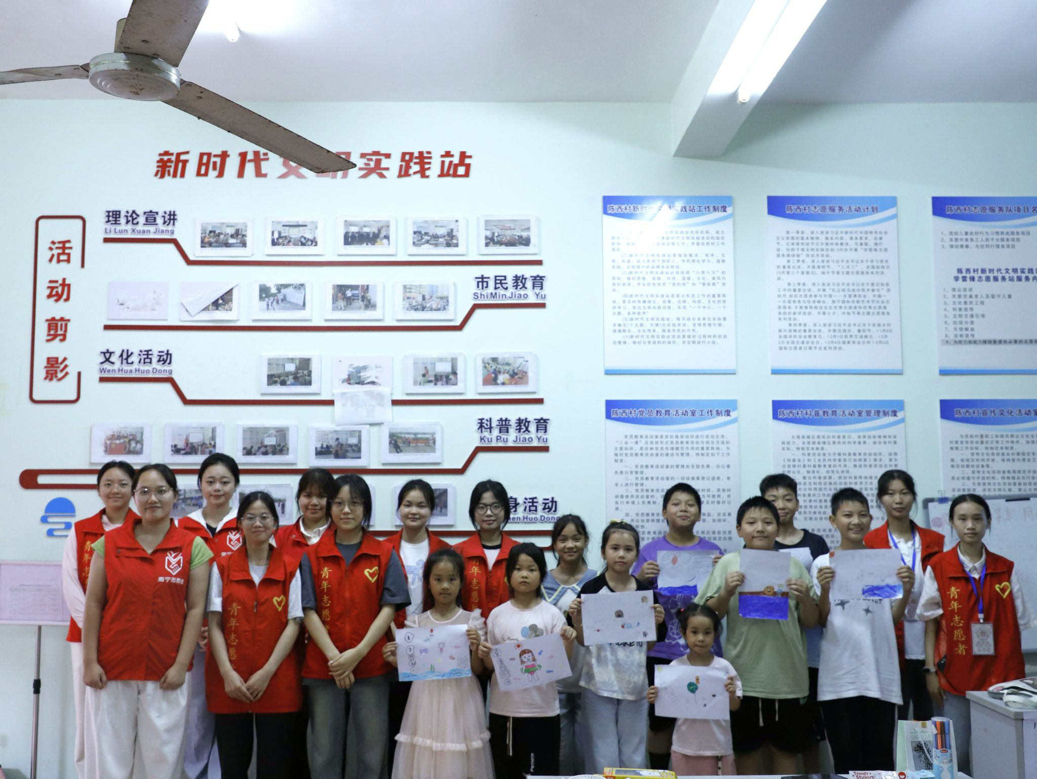志愿者与小朋友们一起合影
